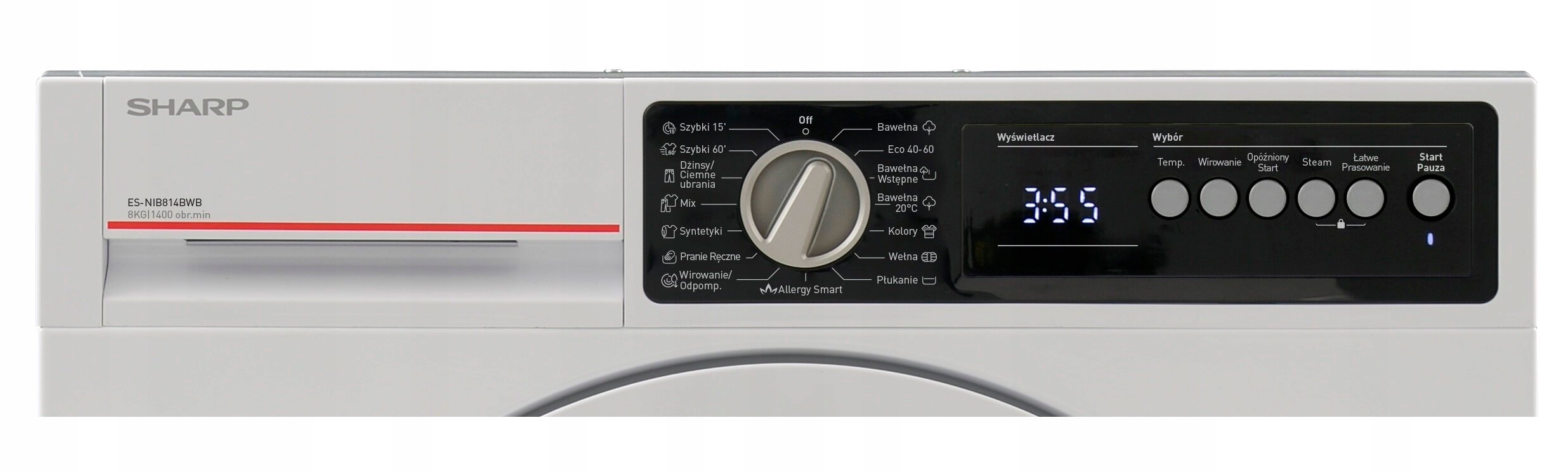 Забудьте про складні інструкції з експлуатації. Завдяки зручній панелі керування щоденне керування пральною машиною SHARP ES-NIB814BWB-PL є інтуїтивно зрозумілим. Виберіть правильну програму та насолоджуйтеся свіжою та чистою білизною.