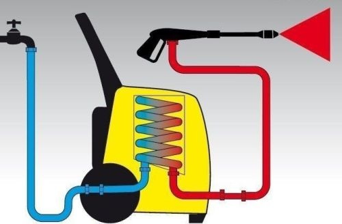 - Сталевий насос з трьома поршнями робить пристрій практично безвідмовним. Тривалість роботи мийних машин на основі щіткових двигунів не повинна перевищувати 20 хвилин безперервної роботи. Після цього часу пральній машині потрібно кілька хвилин, щоб охолонути.
