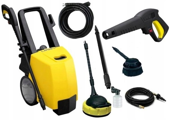 - Мийка заснована на щітковому двигуні і оснащена трипоршневим алюмінієвим насосом зі сталевим поршні. Пральна машина має систему AUTO-STOP, яка вмикає пральну машину лише при натисканні на курок пістолета.