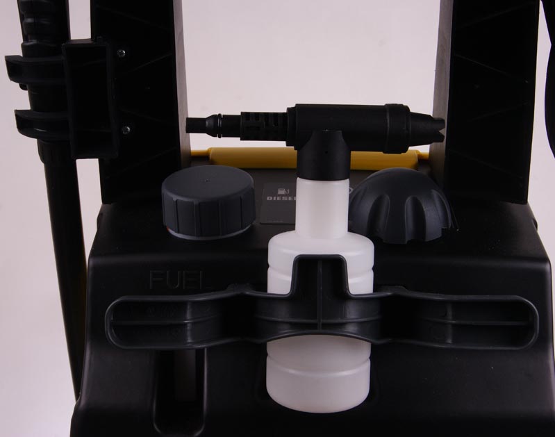 Мийка постачається з пінним аплікатором, який наносить хімікати під тиском.