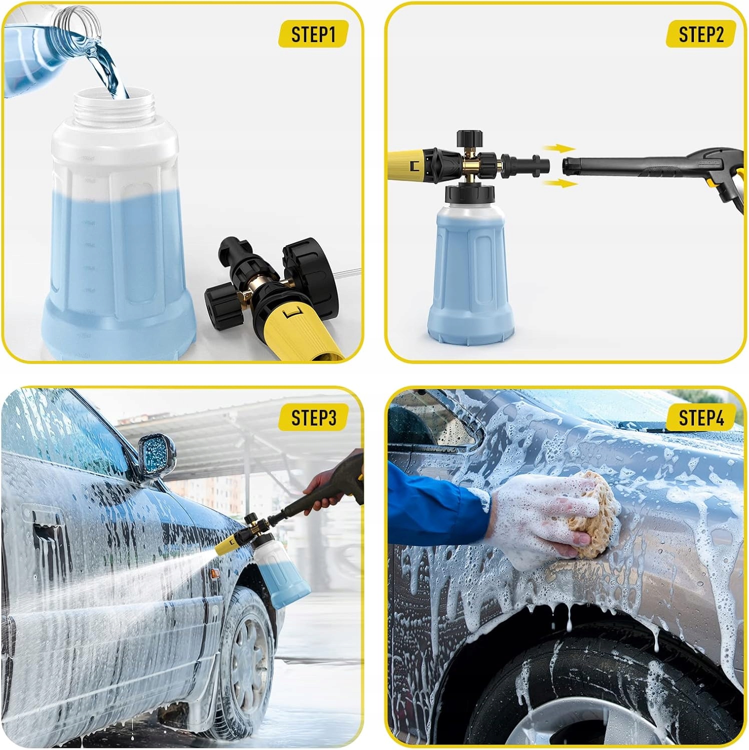 ✔ [простий у використанні]: спочатку вилийте мило в пляшку з гарячою водою, наповненою гарячою водою, щоб отримати піну з гарячою водою; Потім використовуйте стандартний адаптер для підключення електричного пістолета з високим тиском; Нарешті, поверніть верхню ручку, щоб встановити потрібну кількість піни, а пістолет з піни зможе розпорошити товсту піну. Ручка регулює кількість відпущеної піни, а пінопласт регулює малюнок розпилення.