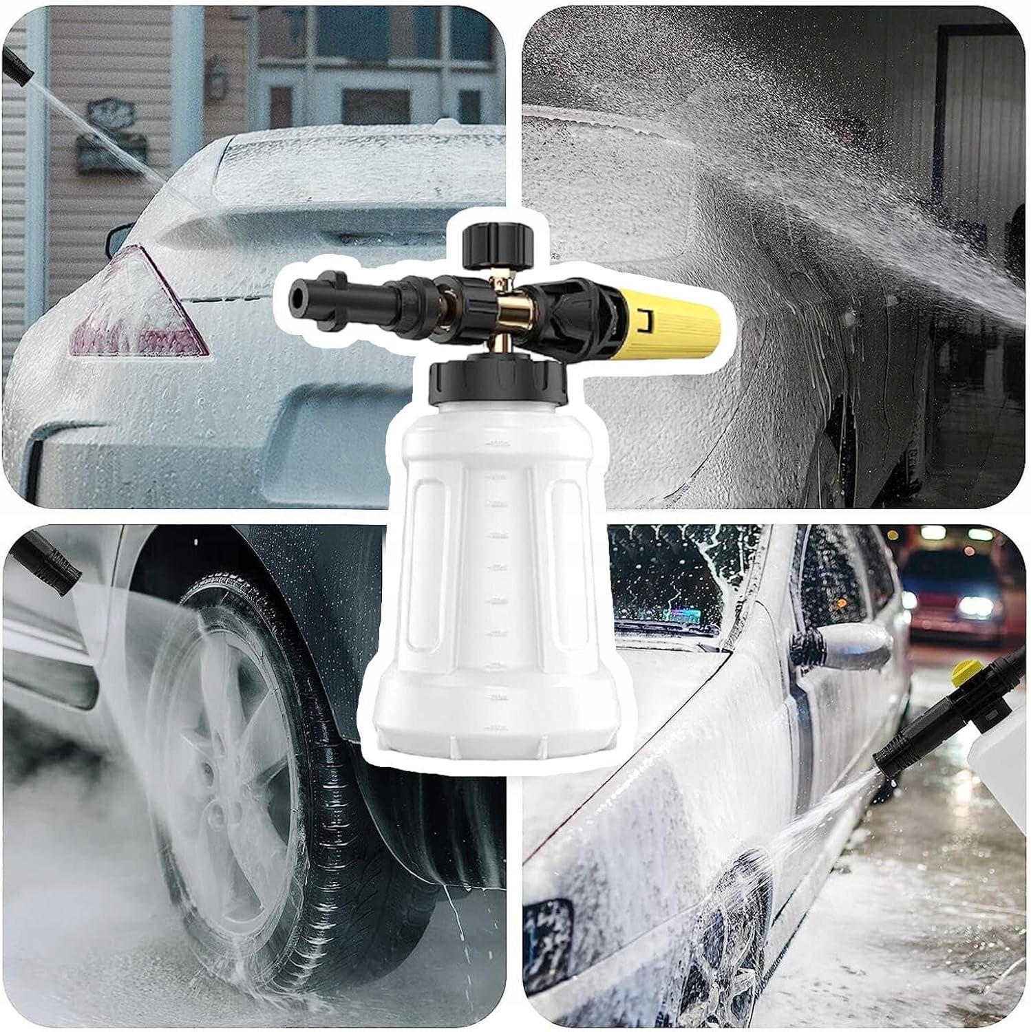 ✔ [Universal】: Цей професійний пістолет з піни є хорошим помічником для чищення. Регульована насадка на 360 ° та ручка регулювання консистенції піни вгорі, ви можете легко закінчити перехід від світла до піни до товстої піни, щоб збільшити досвід очищення та гри. Товста піна швидко розчиняє плями та бруд, і завдяки рукавичкам для очищення піни це ідеально підходить для очищення автомобілів, мотоциклів, підлог, вікон, проїзних доріжок, дахів, сайдингу та не тільки.