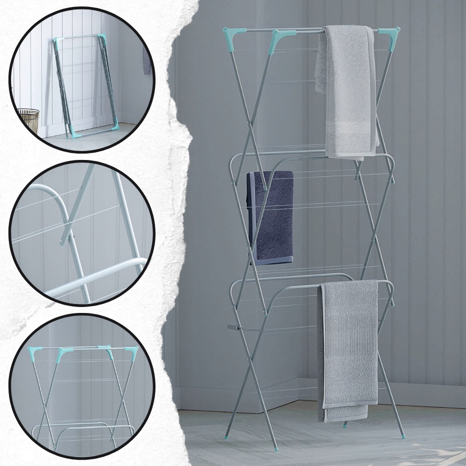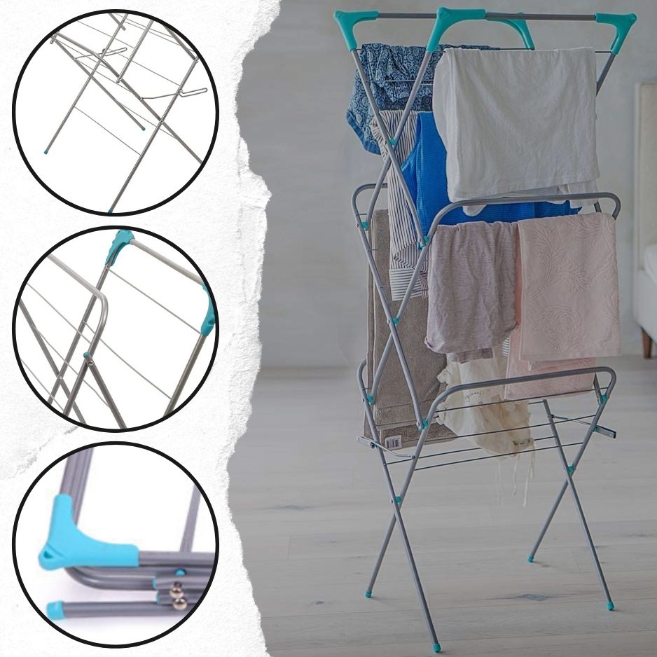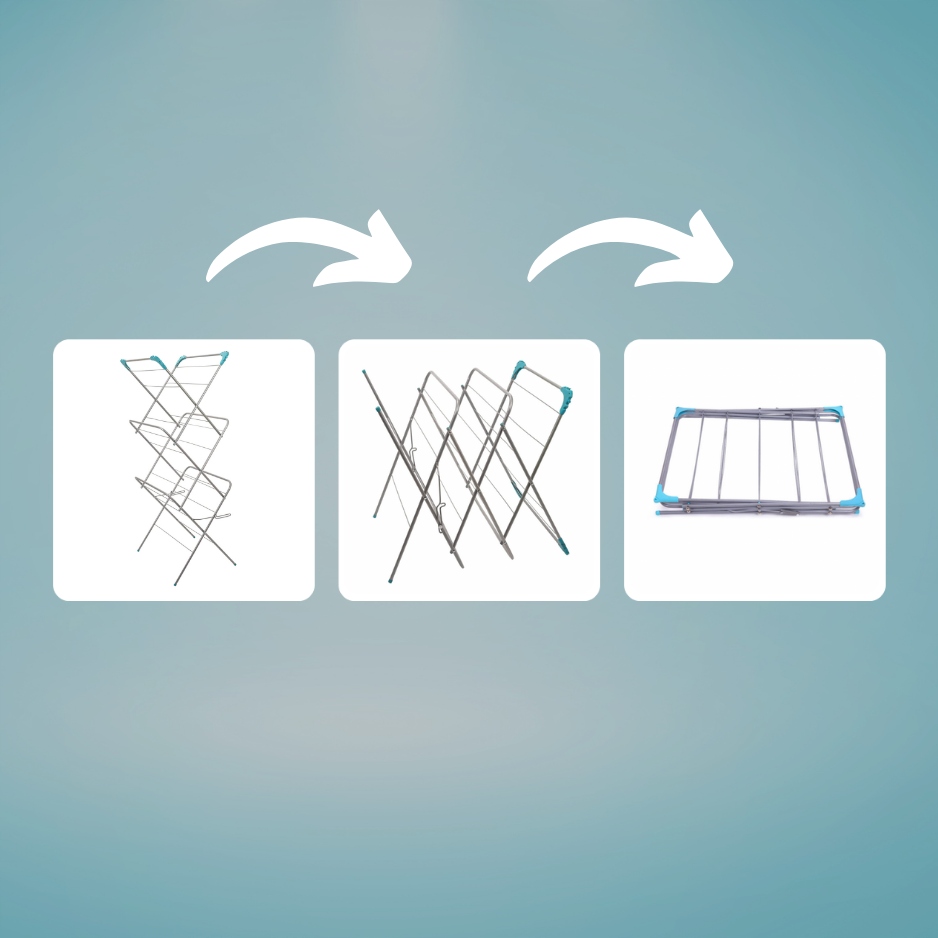 Окремо стояча вертикальна сушильна машина не тільки забезпечить багато місця для вашого одягу – вона має 6 складних стулок / 2 штанги на кожен, а також заощадить дорогоцінний простір у вашій квартирі.