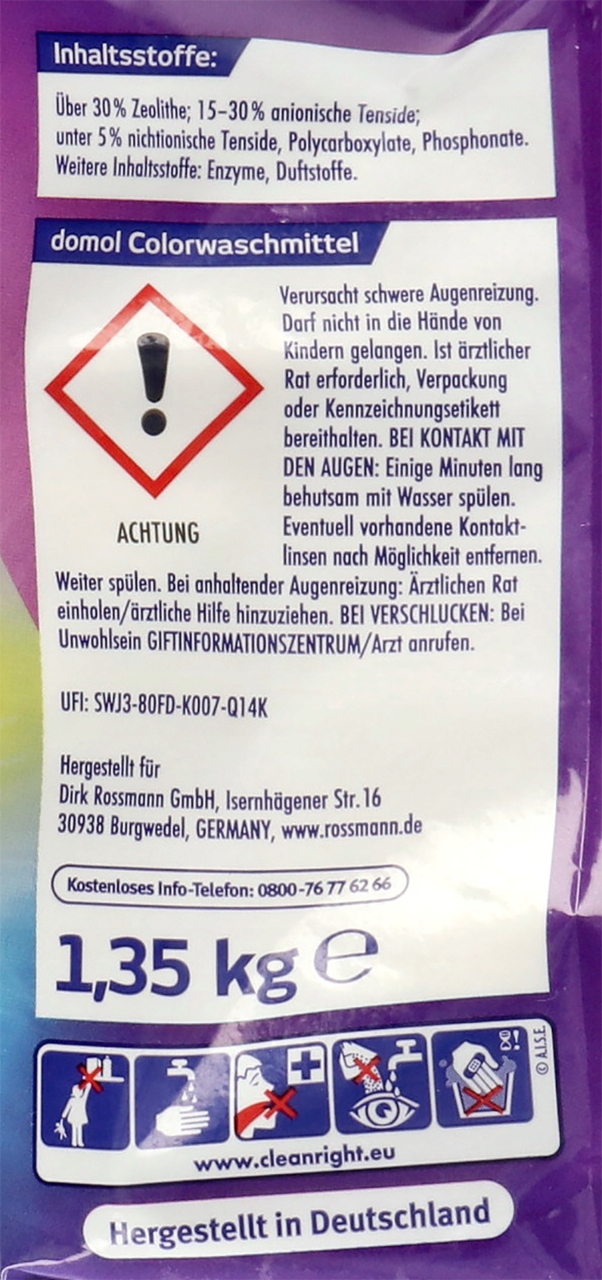 Domol порошок для прання кольорових тканин забезпечує ретельну чистоту та блискучу білизну - від 20 °C