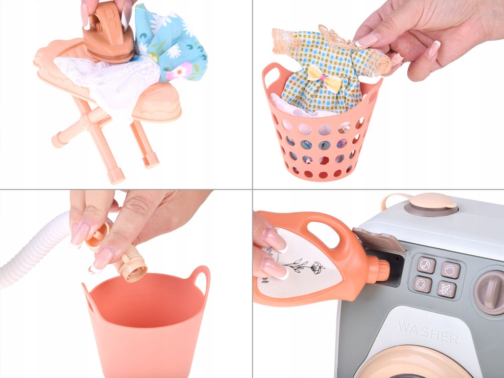 - Ця автоматична пральна машина для дітей — ідеальний спосіб розвинути уяву та креативність під час гри. Іграшка має обертовий барабан, який обертається і світиться різними кольорами, створюючи реалістичні звукові та світлові ефекти. Завдяки функції води малюки можуть наповнювати барабан водою і зливати її за допомогою шланга. Сенсорна панель з програмами прання і рухомі елементи, такі як барабан, що відкривається, і ящик для пральних засобів, роблять гру ще більш привабливою. У набір також входять додаткові аксесуари, такі як прасувальна дошка, праска, вішалки для білизни, кошики для білизни, флакони з пральними засобами, сукні та багато інших елементів, завдяки яким діти відчують себе справжніми прибиральницями. Виготовлена з високоякісного пластику, пральна машина має привабливий оливковий дизайн із сенсорною панеллю, яка живиться від трьох батарейок АА. Пропонуючи реалістичну та інтерактивну гру, ця автоматична пральна машина для дітей є чудовим способом розвитку ручних навичок та творчих здібностей, водночас забезпечуючи багато задоволення та радості. Ідеальний подарунок для маленьких домашніх помічників!