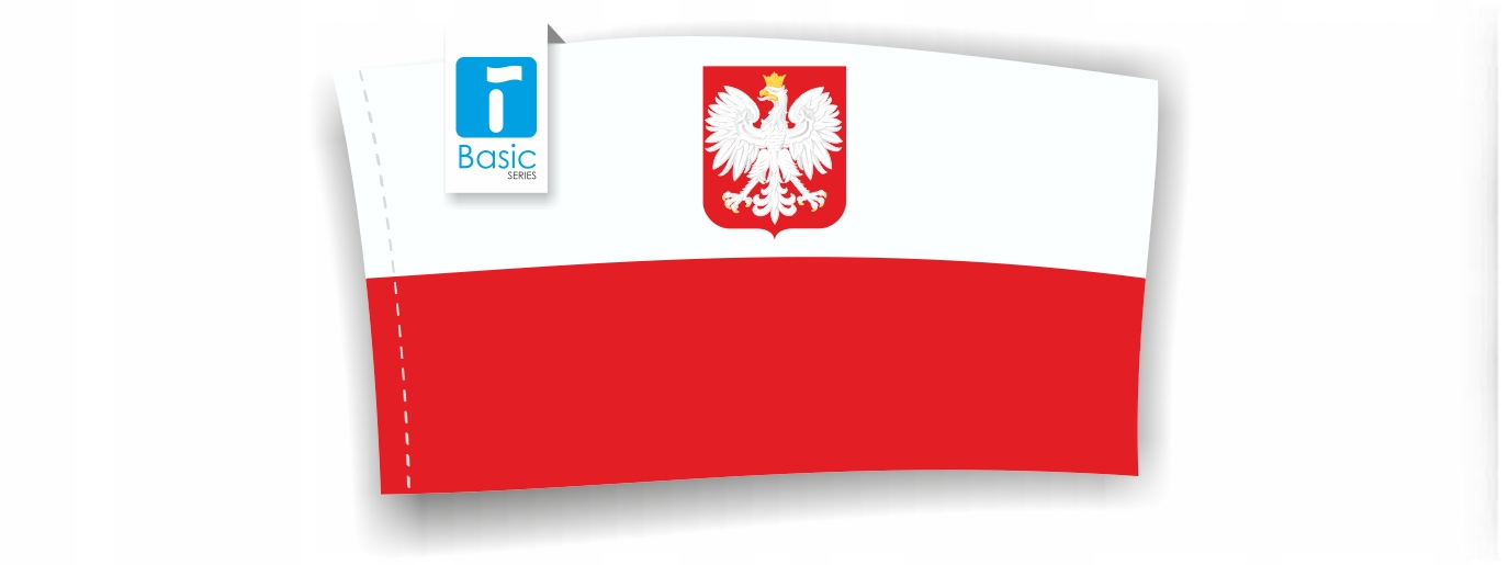 це наша найпопулярніша та основна лінійка прапорів, яка щодня виготовляється тисячами штук на наших виробничих підприємствах у Згежі та Домбрувці Вельці. Тканина BASIC Plain Tafeta, яка щодня використовується для виготовлення наших прапорів, — це спеціально стабілізована легка тканина, яка завдяки своєму щільному переплетенню чудово подає малюнок кожного прапора та велично майорить навіть при слабкому вітрі. Кожен прапор, від початку до кінця процесу виробництва, був виготовлений на 100% у Польщі.