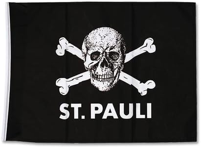 Стильний і виразний прапор із легендарним мотивом черепа – символом культового німецького клубу FC St. Paula з Гамбурга. Ідеально для любителів футболу, панк-музики, свободи та незалежності!
