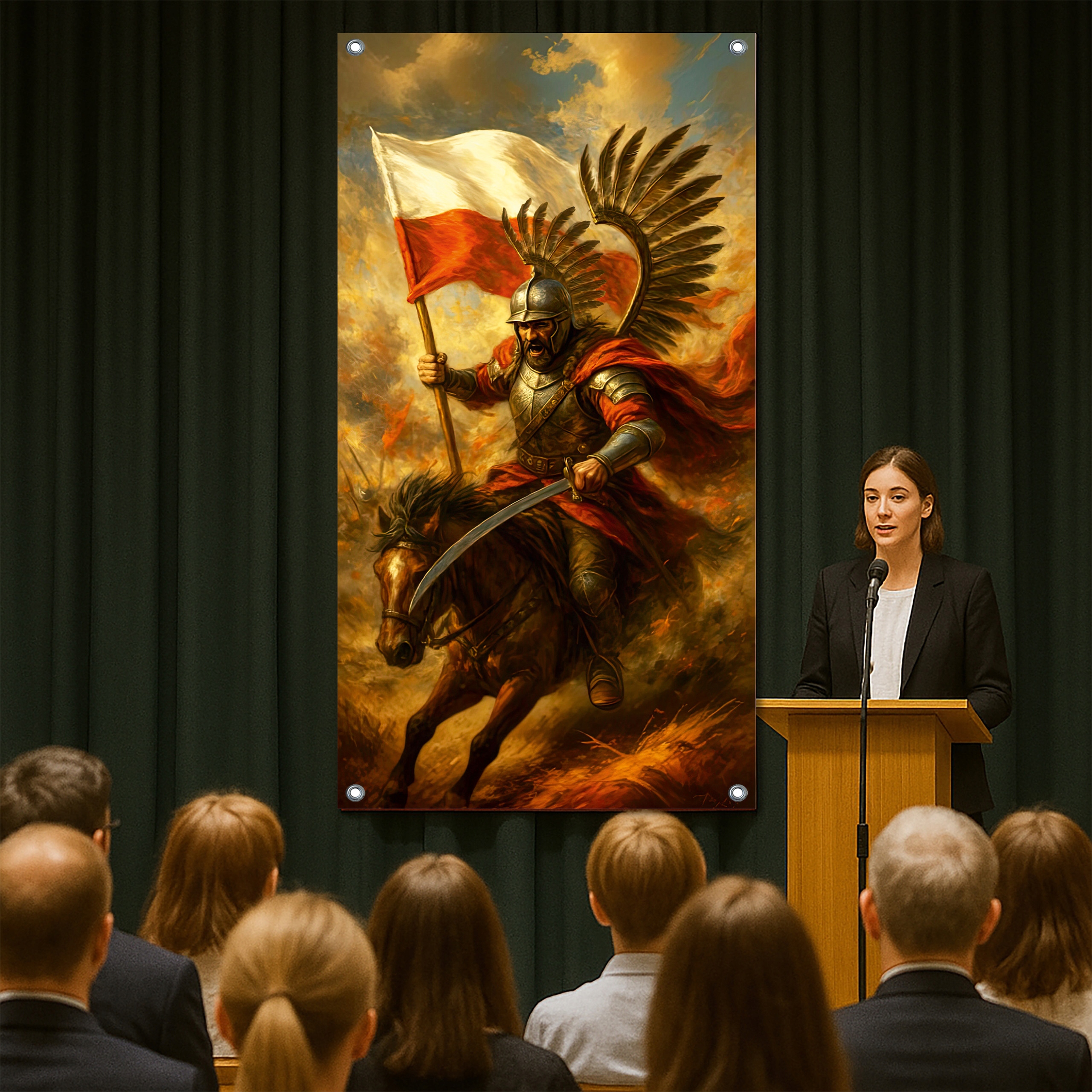 Прапор із гусаром - Хоробра Польща - Патріотична прикраса шкільного будинку