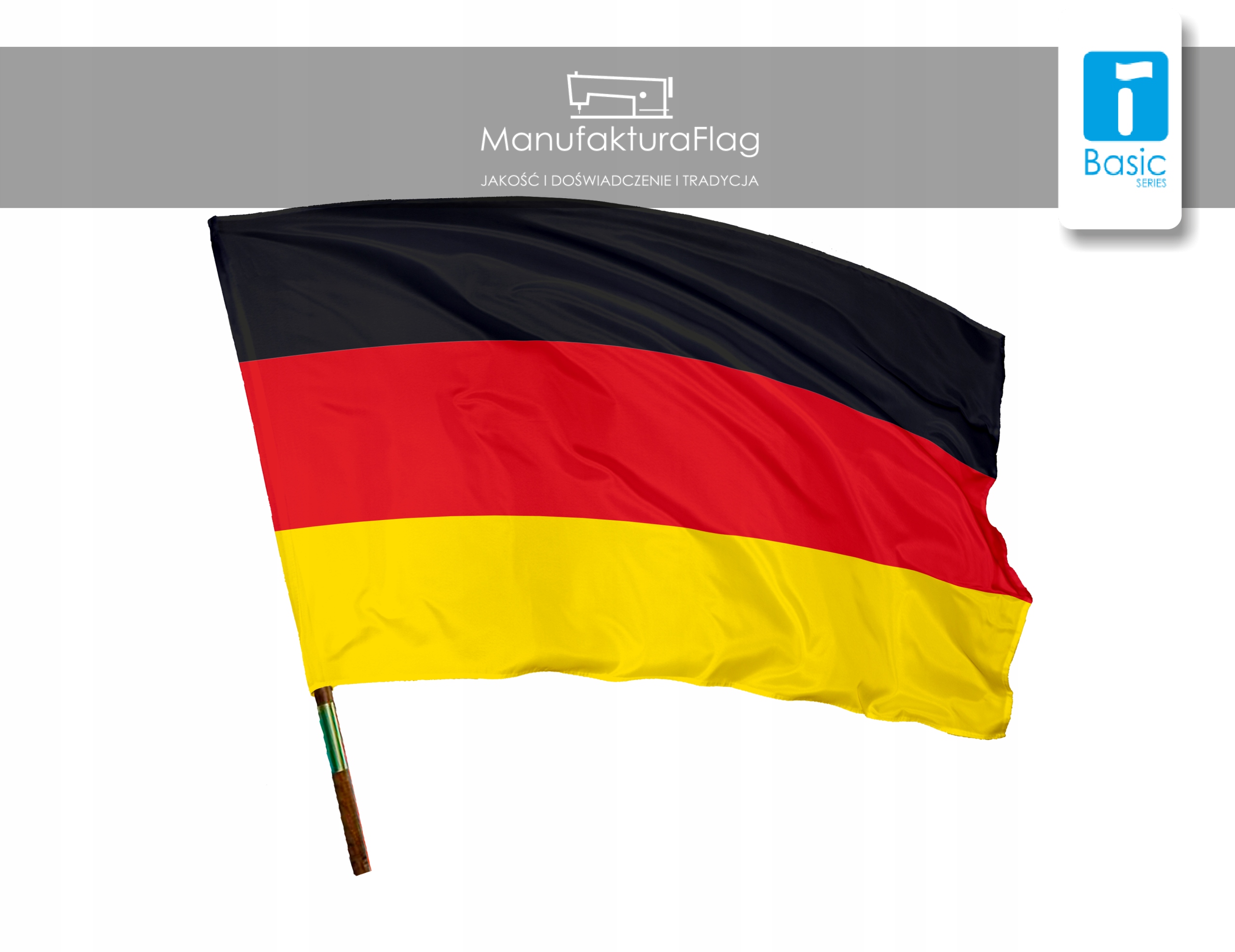 це наша найпопулярніша та основна лінійка прапорів, яка щодня виготовляється тисячами штук на наших виробничих підприємствах у Згежі та Домбрувці Вельці. Тканина BASIC Plain Tafeta, яка щодня використовується для виготовлення наших прапорів, — це спеціально стабілізована легка тканина, яка завдяки своєму щільному переплетенню чудово подає малюнок кожного прапора та велично майорить навіть при слабкому вітрі. Кожен прапор, від початку до кінця процесу виробництва, був виготовлений на 100% у Польщі.