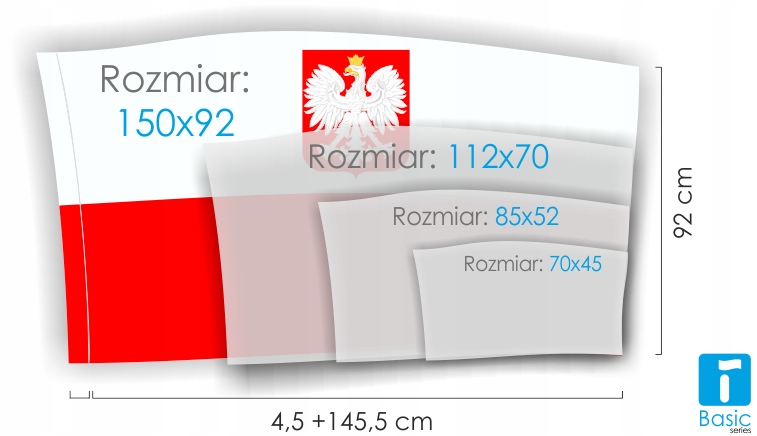 це наша найпопулярніша та основна лінійка прапорів, яка щодня виготовляється тисячами штук на наших виробничих підприємствах у Згежі та Домбрувці Вельці. Тканина BASIC Plain Tafeta, яка щодня використовується для виготовлення наших прапорів, — це спеціально стабілізована легка тканина, яка завдяки своєму щільному переплетенню чудово подає малюнок кожного прапора та велично майорить навіть при слабкому вітрі. Кожен прапор, від початку до кінця процесу виробництва, був виготовлений на 100% у Польщі.