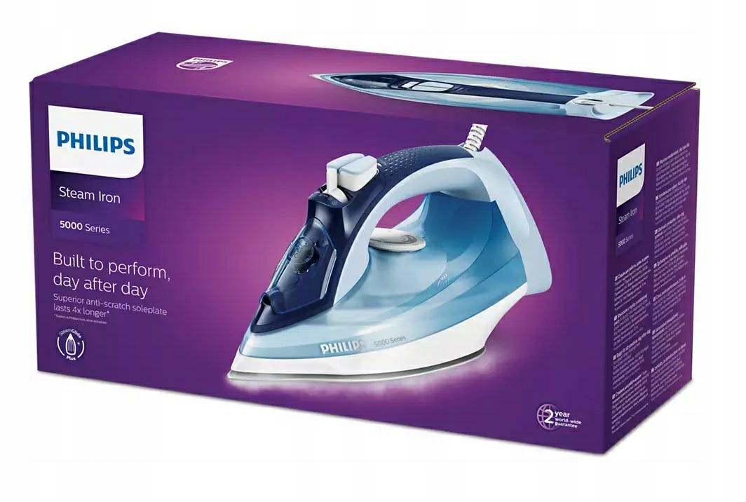 Ця високоякісна праска забезпечує надійну роботу завдяки стійкій до подряпин підошві SteamGlide Plus, безперервній потужній подачі пари та вбудованому видаленню накипу