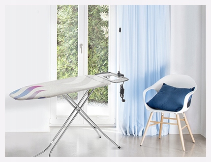 Дошка Total Reflect M має все, що робить прасування максимально легким. Він оснащений великою підставкою для праски або парової станції, електричним роз’ємом і антеною, що підтримує шнур праски.