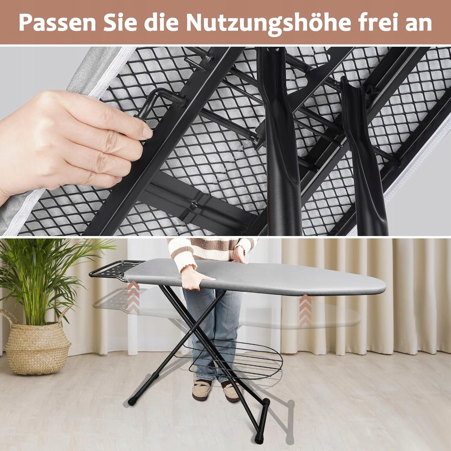 - Широка панель: прасувальна дошка має велику прасувальну поверхню 110 x 34 см, що забезпечує достатньо місця для всього вашого одягу або ковдр, зменшує кількість пересувань одягу під час прасування та підвищує ефективність прасування.
