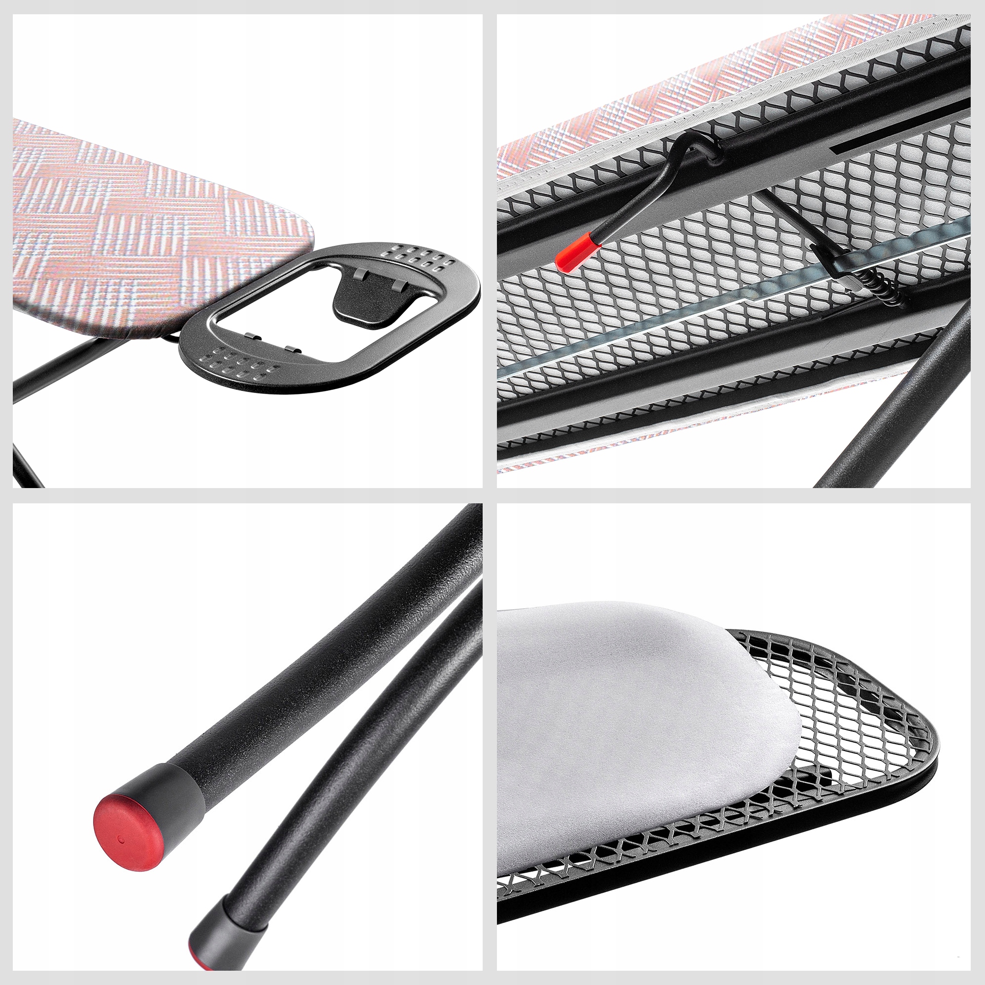 ✅ безпечний - Аксесуар прасування працюватиме в руках кожного члена домогосподарства. Дизайн дошки характеризується стабільністю, що забезпечується не -слизними ногами та системою, яка захищає її від випадкового складання.