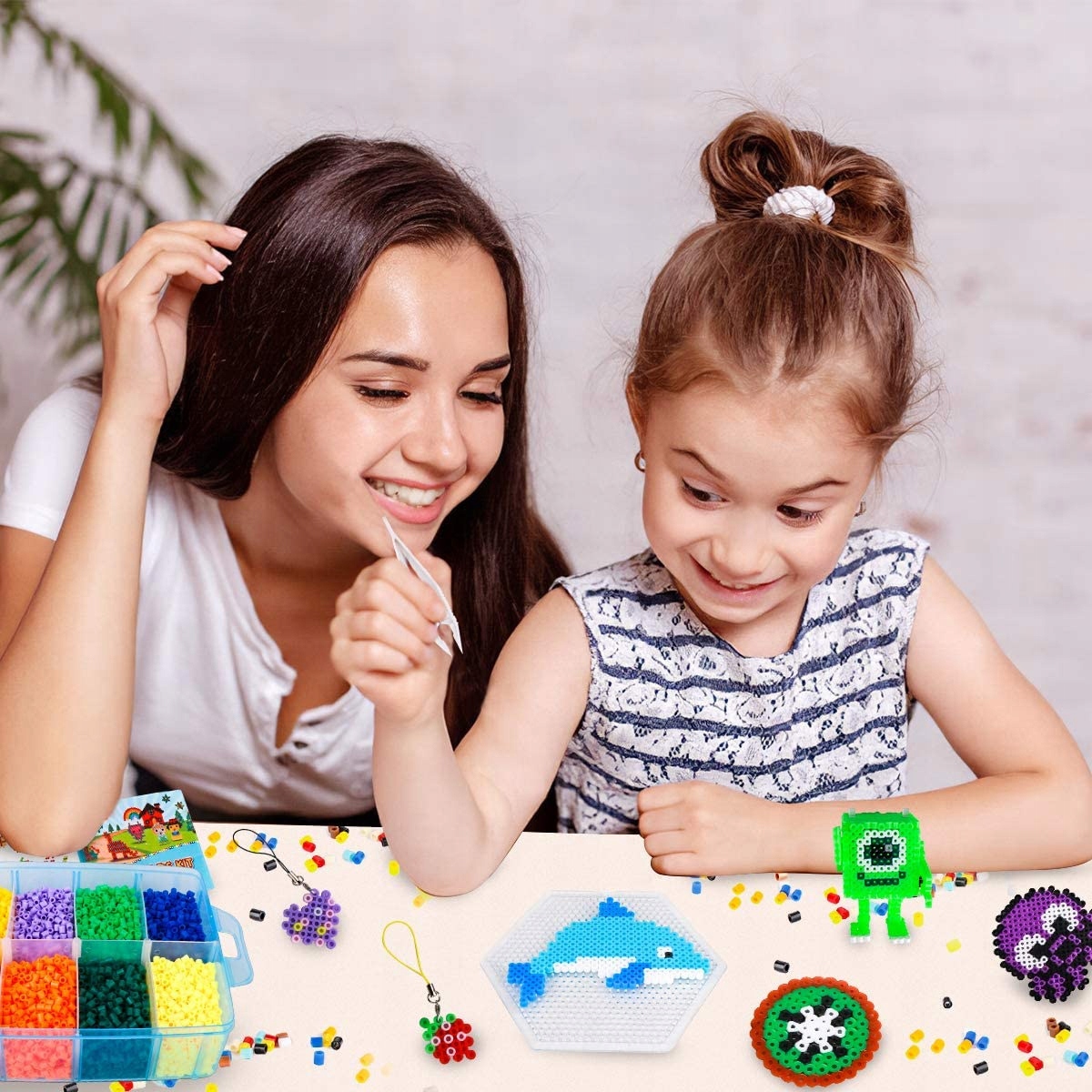 Набір з 9000 намистин з аксесуарами викликає у дитини бажання складати та грати. Створення красивих, барвистих, казкових малюнків різної форми стане справжньою пристрастю. А можливостей багато - дитина може створювати різноманітних персонажів, тварин, а наклавши кілька шарів шаблону, створювати 3D фігури.
