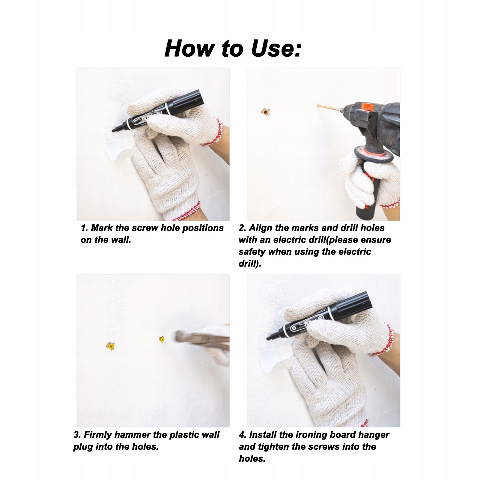2. Запобігання падінню: Вішалка для прасувальної дошки проста у встановленні, стійкий до зносу, протизапальні, придатні для багатьох типів стін