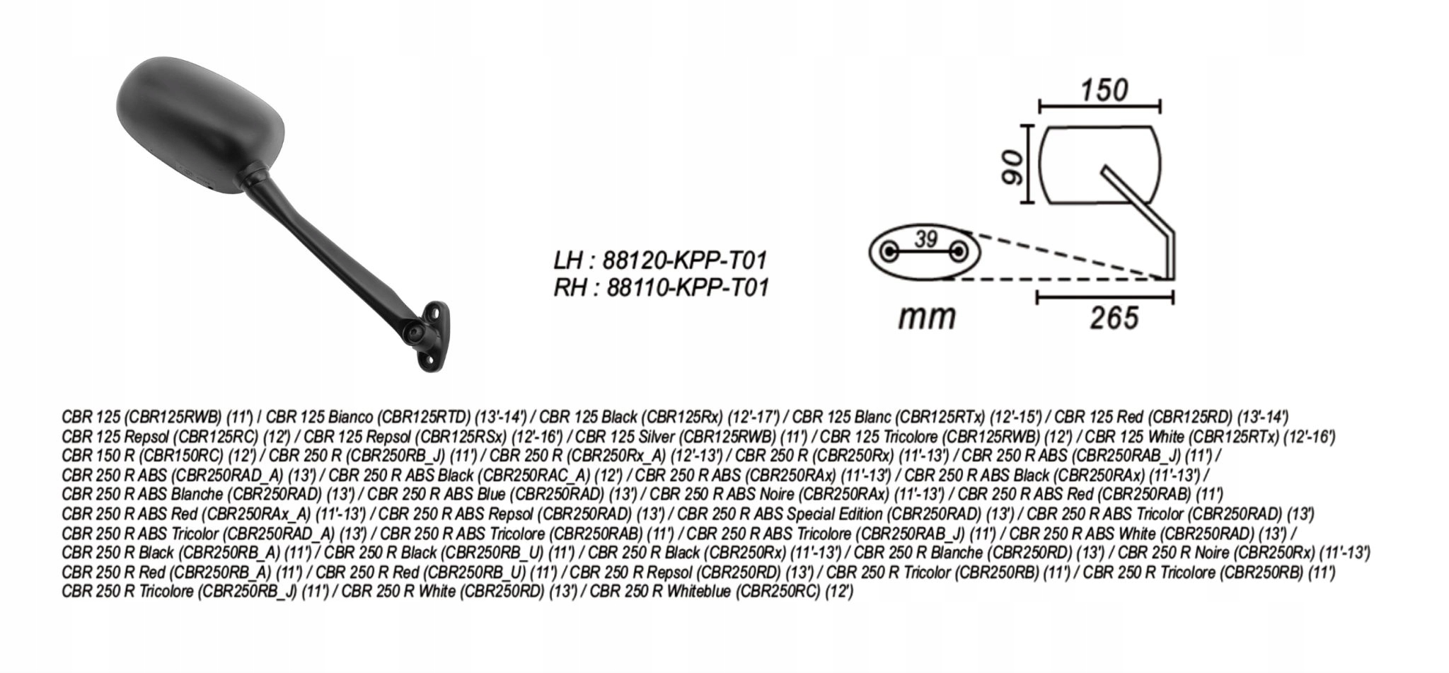 Right mirror Honda CBR 125/250 2011-1 Power Force