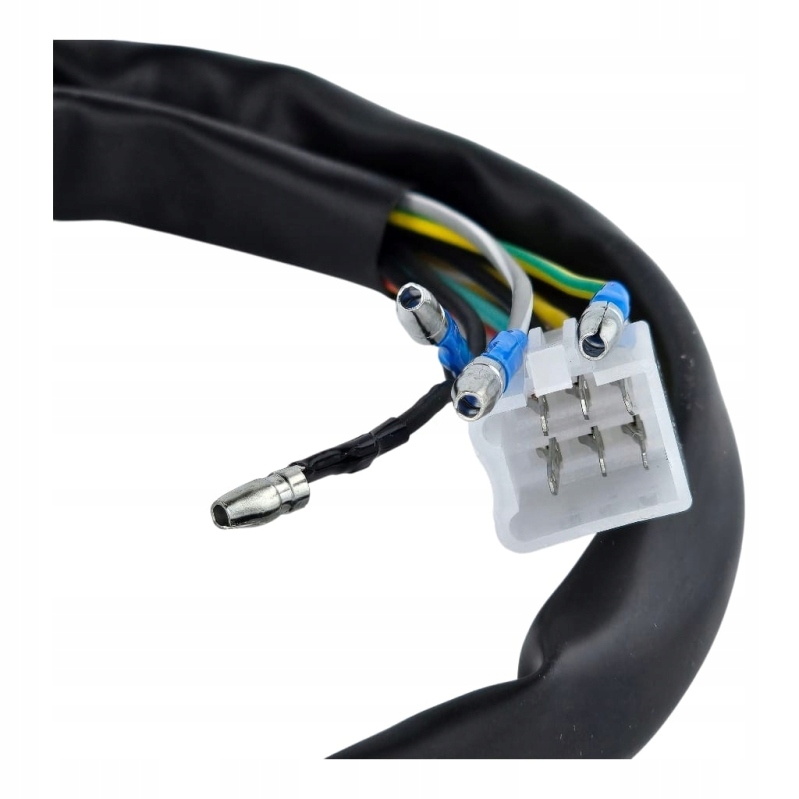 Правий комбінований перемикач PY-5 з роз'ємом "папа", 6 контактів + 4 контакти трубки + 2 роз'єми "мама". Перемикач містить корпус дроселя для кабелю з двома монтажними планками. Вимкнене світло - габаритні ліхтарі - ближнє світло, замок запалювання + стартер.