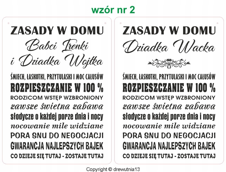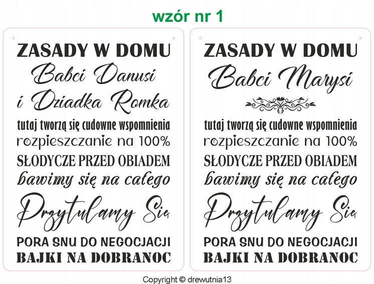 Нижче ми представляємо шаблони дощок для обох дідусів і бабусь або тільки для бабусі/дідуся - тоді ми розміщуємо графічний елемент у другому рядку