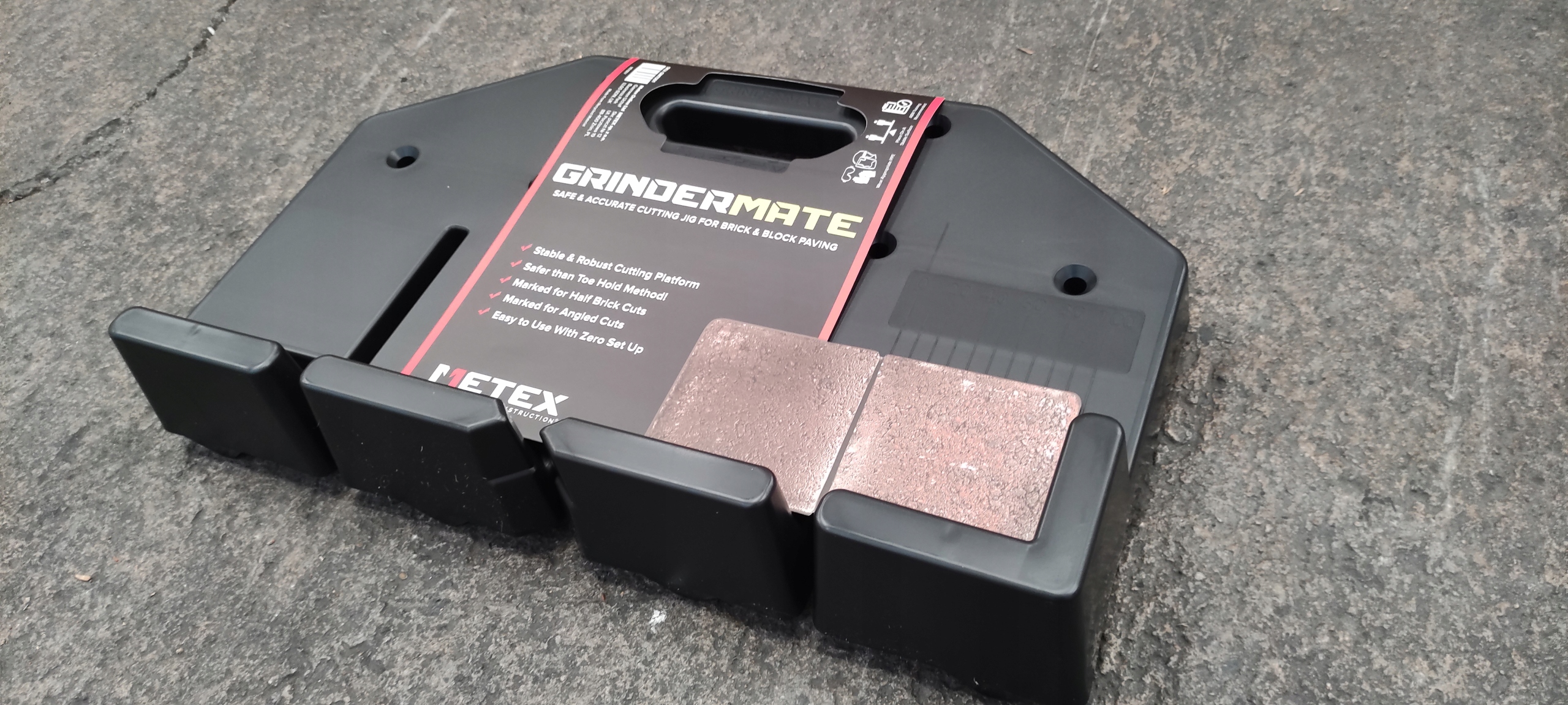На відміну від великих громіздких ріжучих інструментів, Metex Grindermate — це проста та легка платформа для різання цегли. і бруківку, яку ви можете просто вийняти з фургона, покласти на землю та почати різати.
