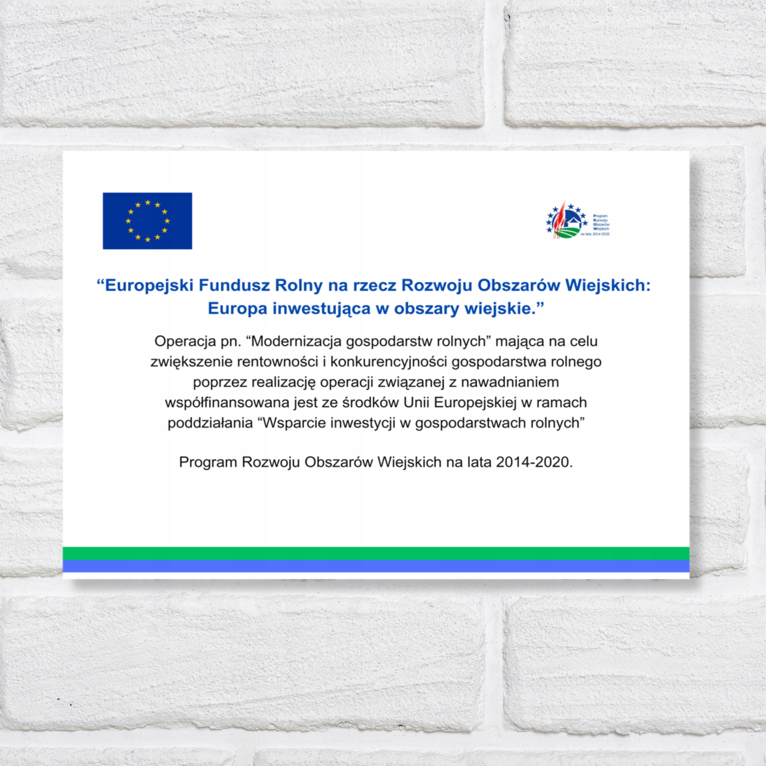Tablica Fundusz Rolny Rozwoju Obszarów Wiejskich |Druk UV| Tabliczka | PROW