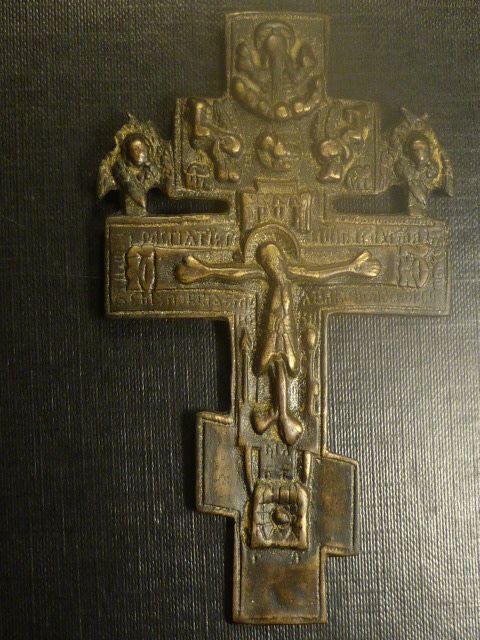Православний хрест, 19/20 ст., бронза/латунь, розміри: висота 11 см. ширина 6,5 см, вага 53,7 г. оригінальна старовинна патина, гарний стан.