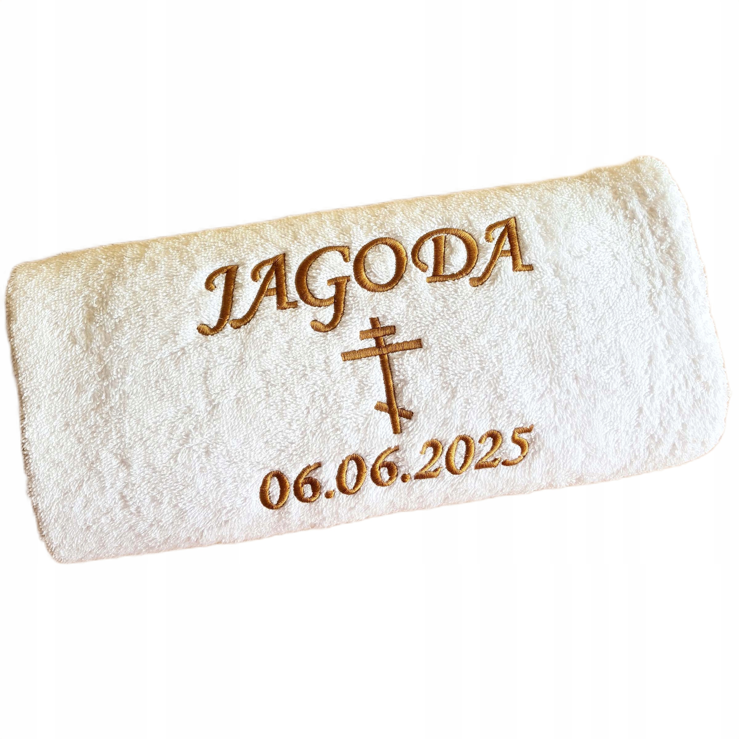 Рушник 50х100 см з власною вишивкою (напис та графіка) - напр. ім'я дитини, дата хрещення