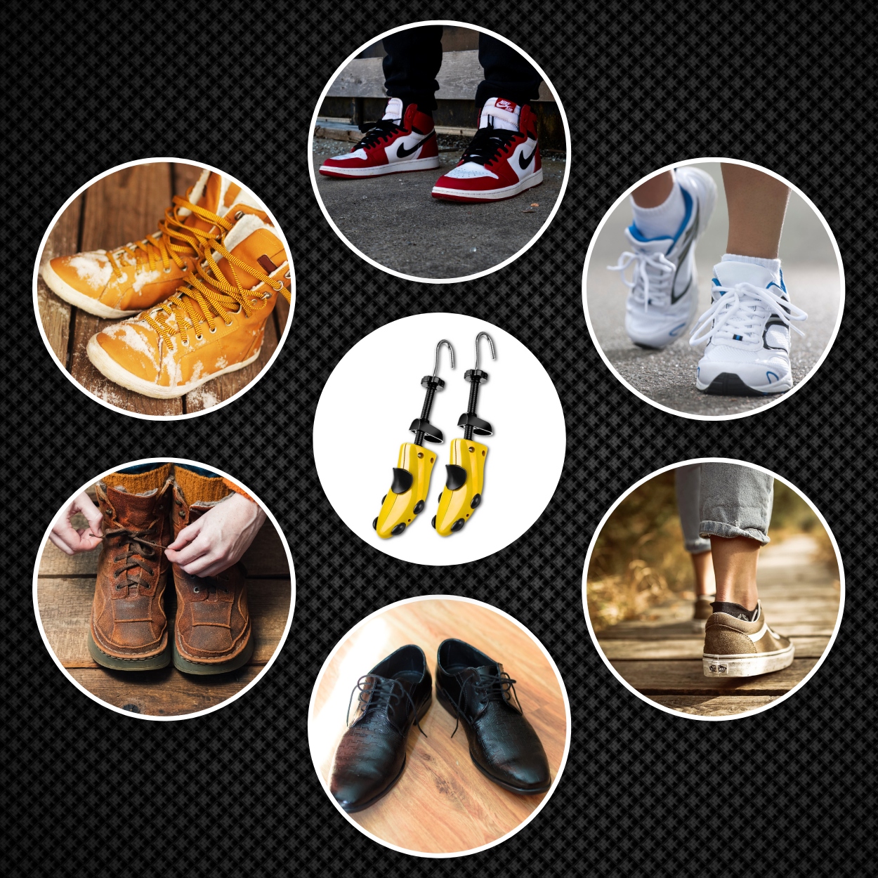 ✔️ Індивідуальне регулювання ✔️ Розтяжки для взуття пропонують ергономічне регулювання, яке дозволяє індивідуально налаштувати взуття відповідно до форми вашої стопи. Завдяки цьому кожна одягнена модель стає майже «пошитою», усуваючи невідповідний тиск і дискомфорт.