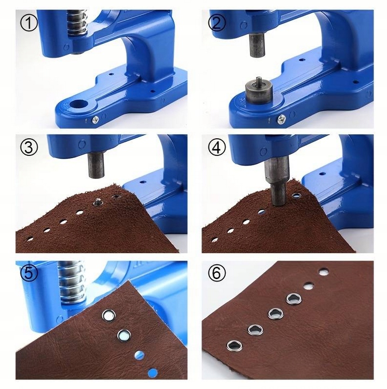 Завдяки різноманітним порадам наш прес дозволяє встановлювати замки та заклепки на різних діаметрів і форм. Це відкриває широкий спектр можливостей дизайн, що дозволяє створювати унікальні вироби зі шкіри.