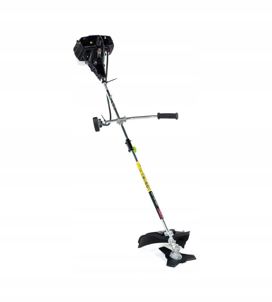 Коса оснащена V-подібною рукояткою для легкого маневрування та зручними плечовими ременями, що забезпечують зручне та безпечне положення під час косіння.