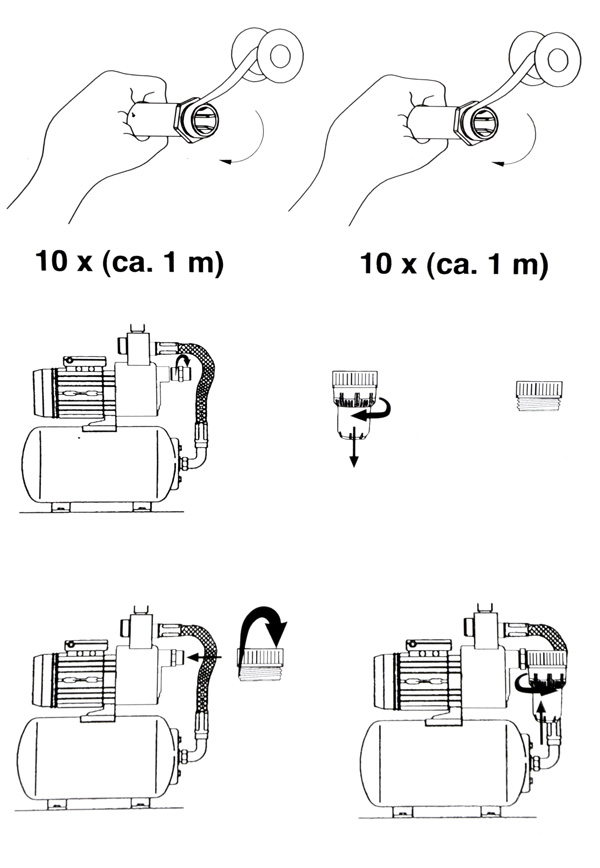 - Попередній фільтр для води, оснащений латунним гвинтом для вентиляції установки, різьбовий з’єднувач із фільтруючим картриджем.