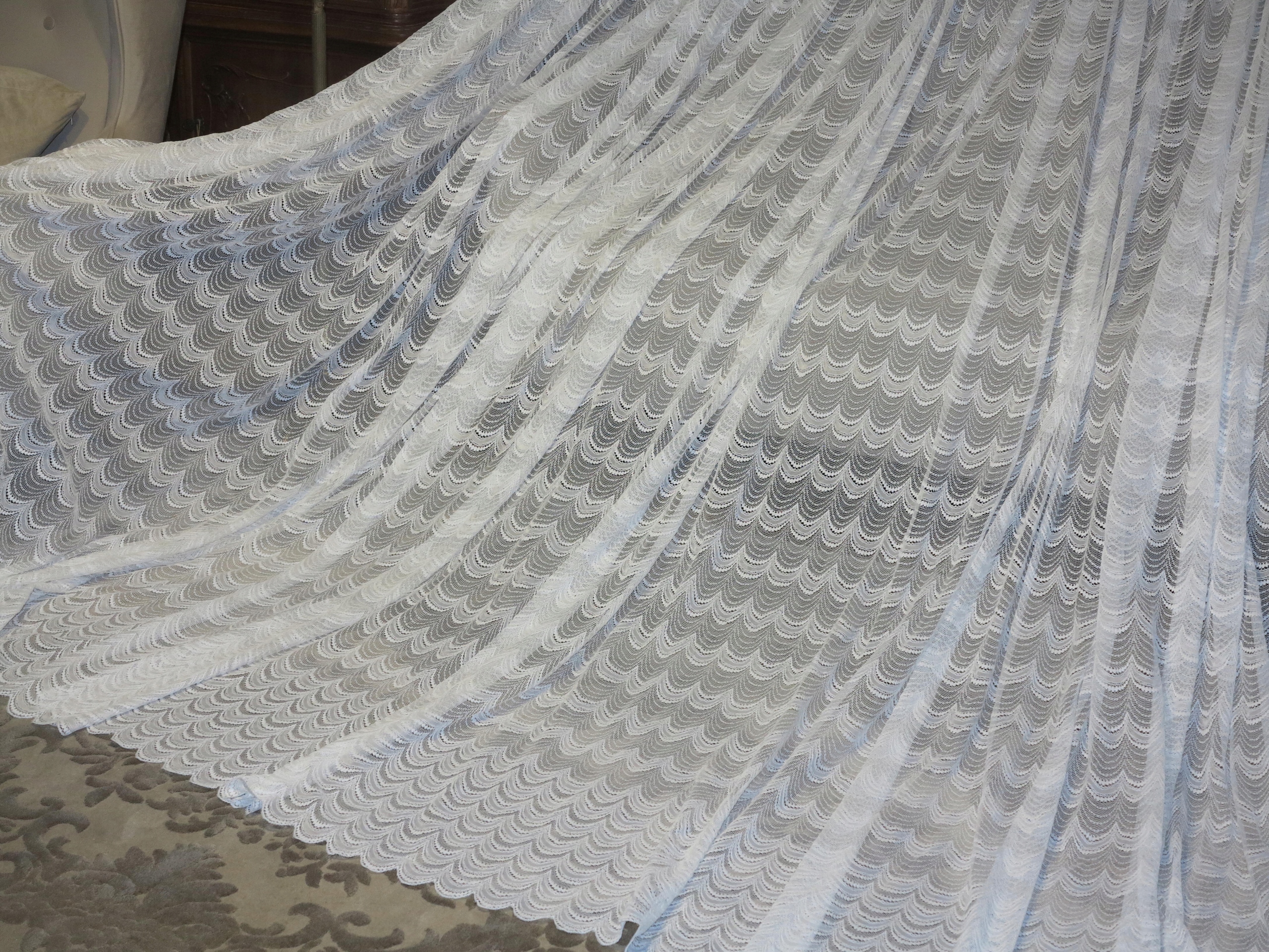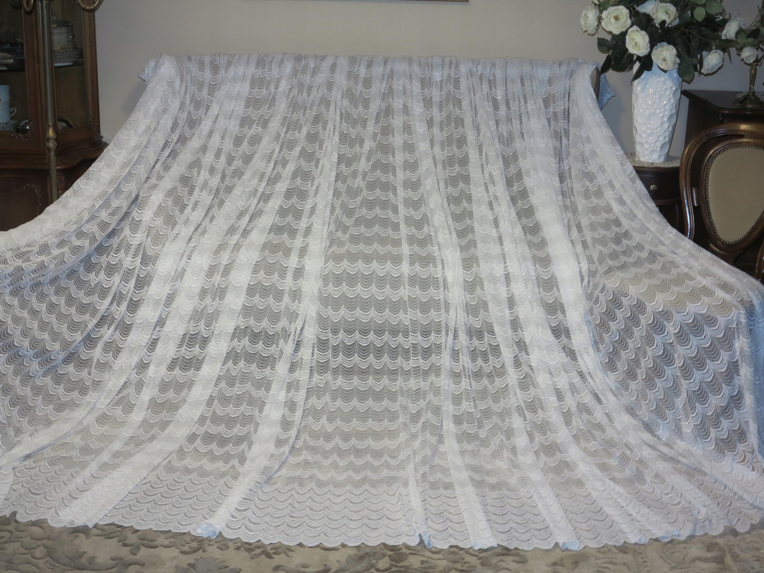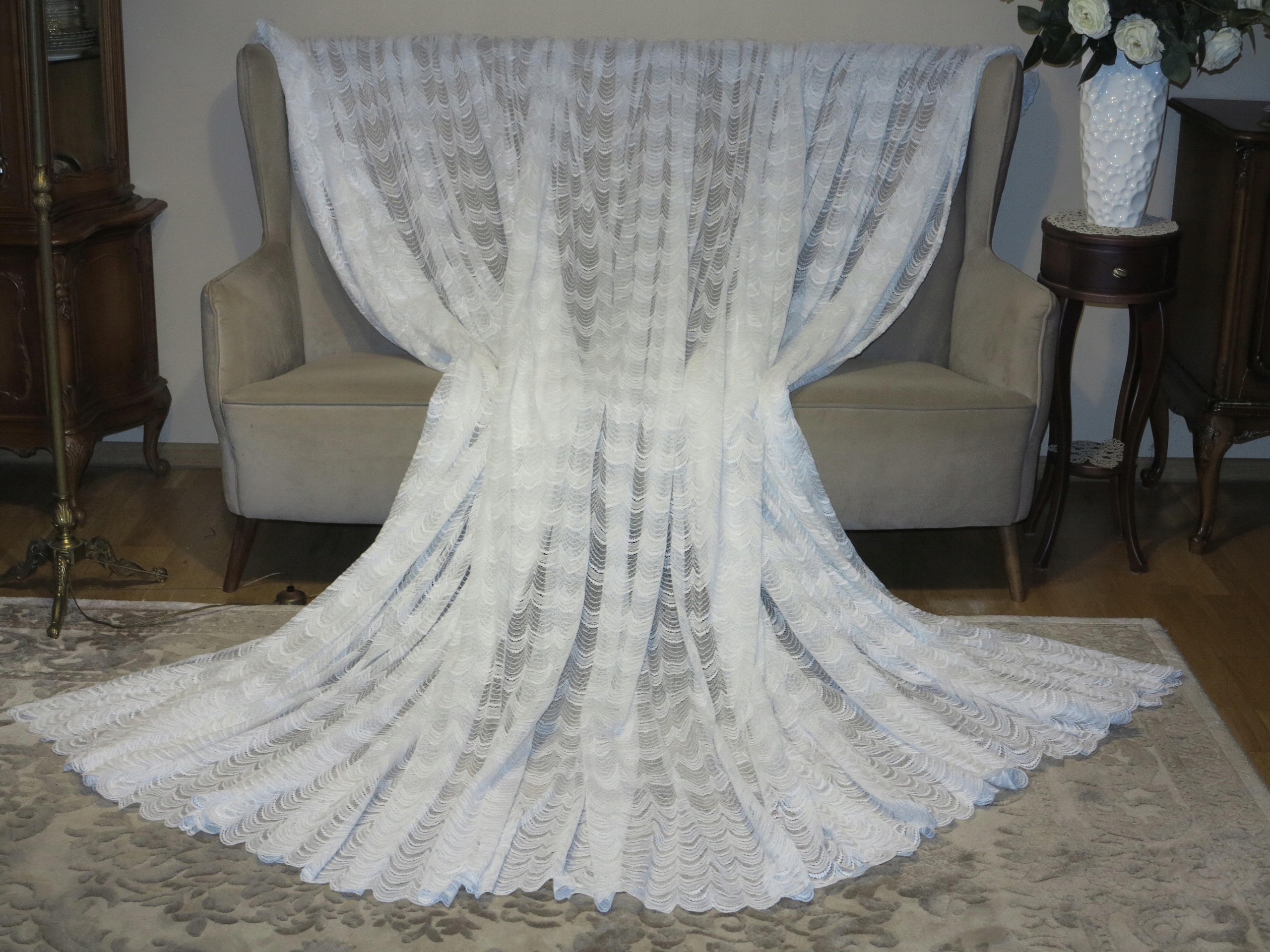 ЧУДОВА БІЛА АНГЛІЙСЬКА ШТОРА З М'ЯКИМ, ЩІЛЬНИМ МЕРЕЖИВОМ ВНИЗУ З НІЖНИМИ ХВИЛЯМИ