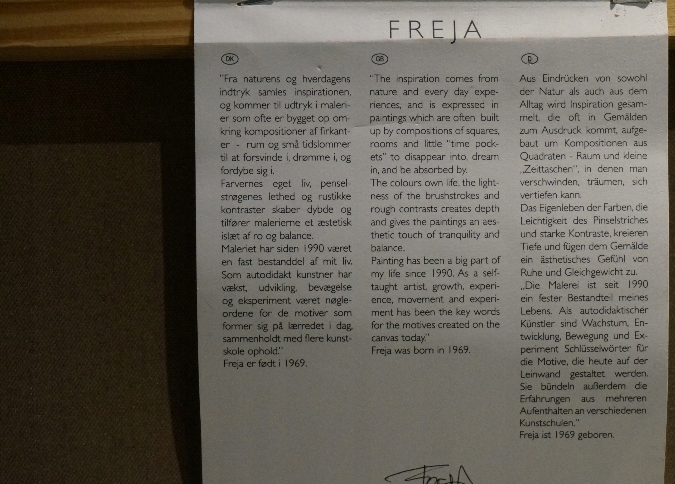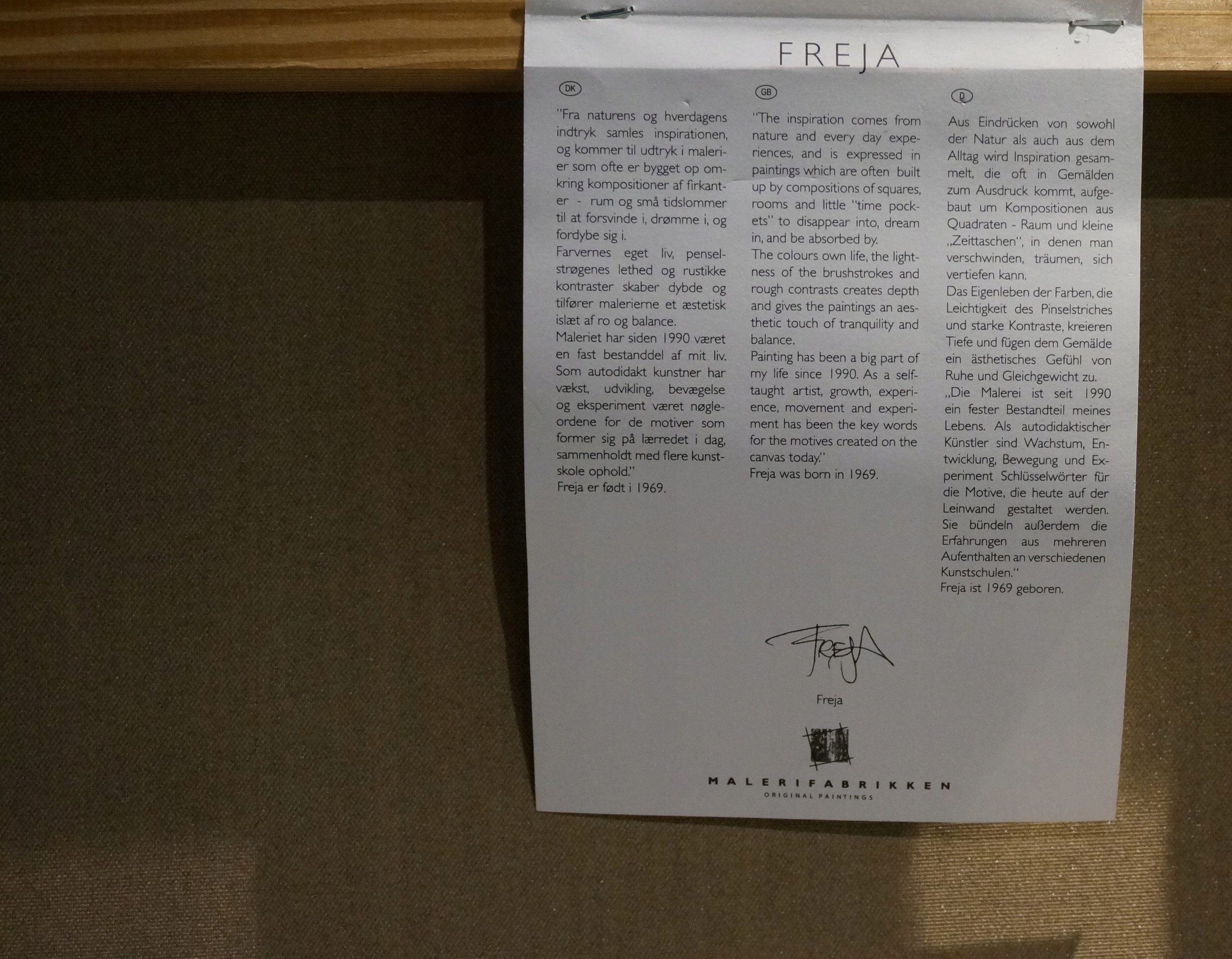 Я можу запропонувати картину на полотні від FREJA. Жінка мовчазна, сповнена пристрасті, але досвідчена життям, вона не вимовляє слів, навіть мудрих слів. Назва зображення Слова мудрості. Freja черпає натхнення в оточенні, власному досвіді та природі. На картині є етикетка та підпис художника. РЕКОМЕНДУЮ!!!