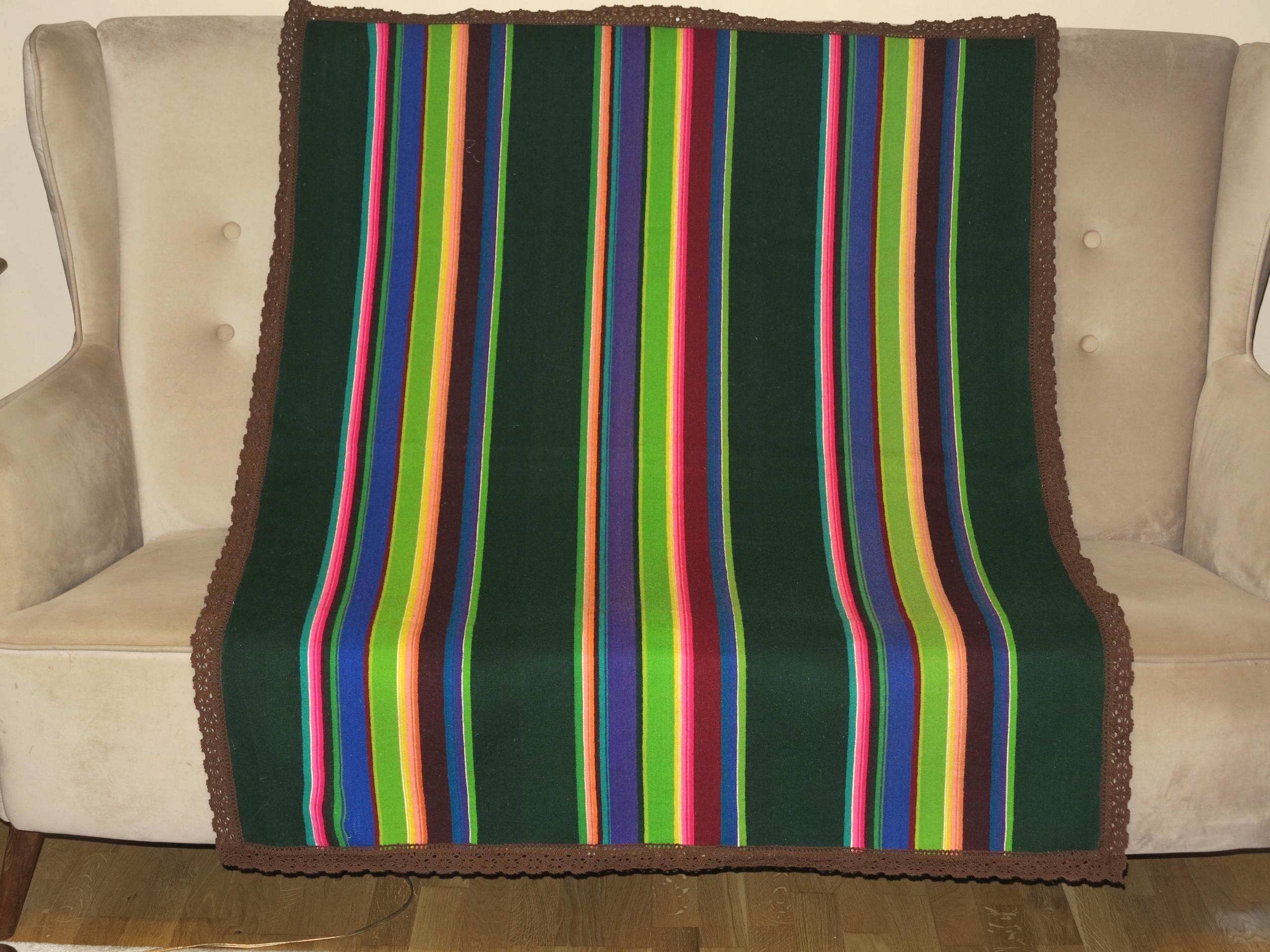 Прекрасна народна скатертина łowicki Pasiak облямована 100%вовна 141/110