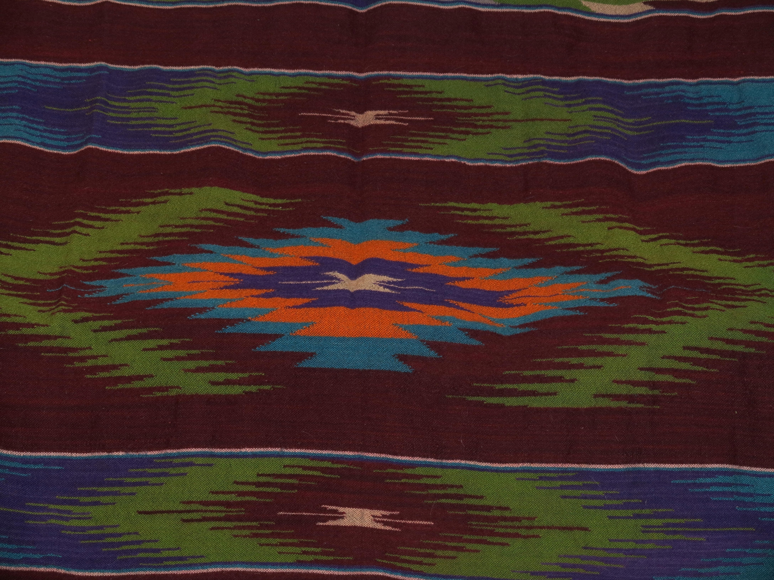ГАРНИЙ, СТОЛІТНИЙ НАРОДНИЙ ВОВНЯНИЙ ОБРУБ, КИЛИМ АБО КОП. ТОВСТИЙ, ТВЕРДИЙ. ФОН В ДУЖЕ ТЕМНО-КОРИЧНЕВОМУ КОЛЬОРІ, КОЛЬОРОВИЙ ДЕКОРАТИВНИЙ, РІДКІСНІ ВИЗЕРУНКИ
