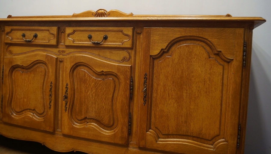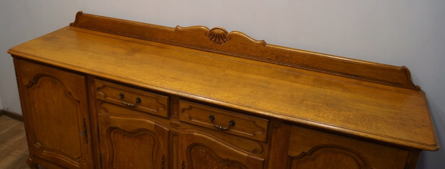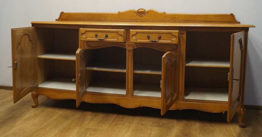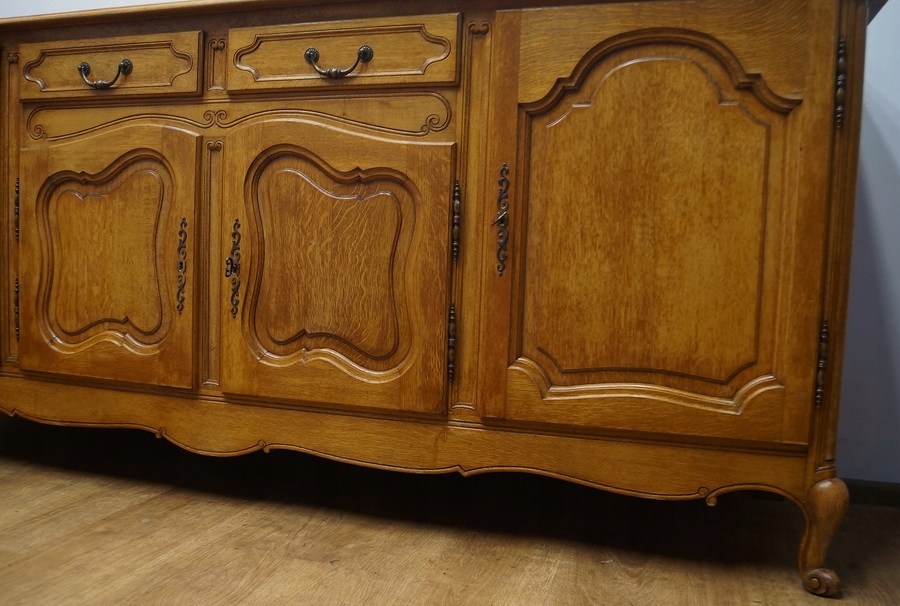 Комод має чотири дверцята і дві шухляди. Комод прикрашений різьбленням і спирається на красиві ніжки кабріоля. Низ оброблений декоративним воланом. Цей предмет меблів унікальний і особливий.
