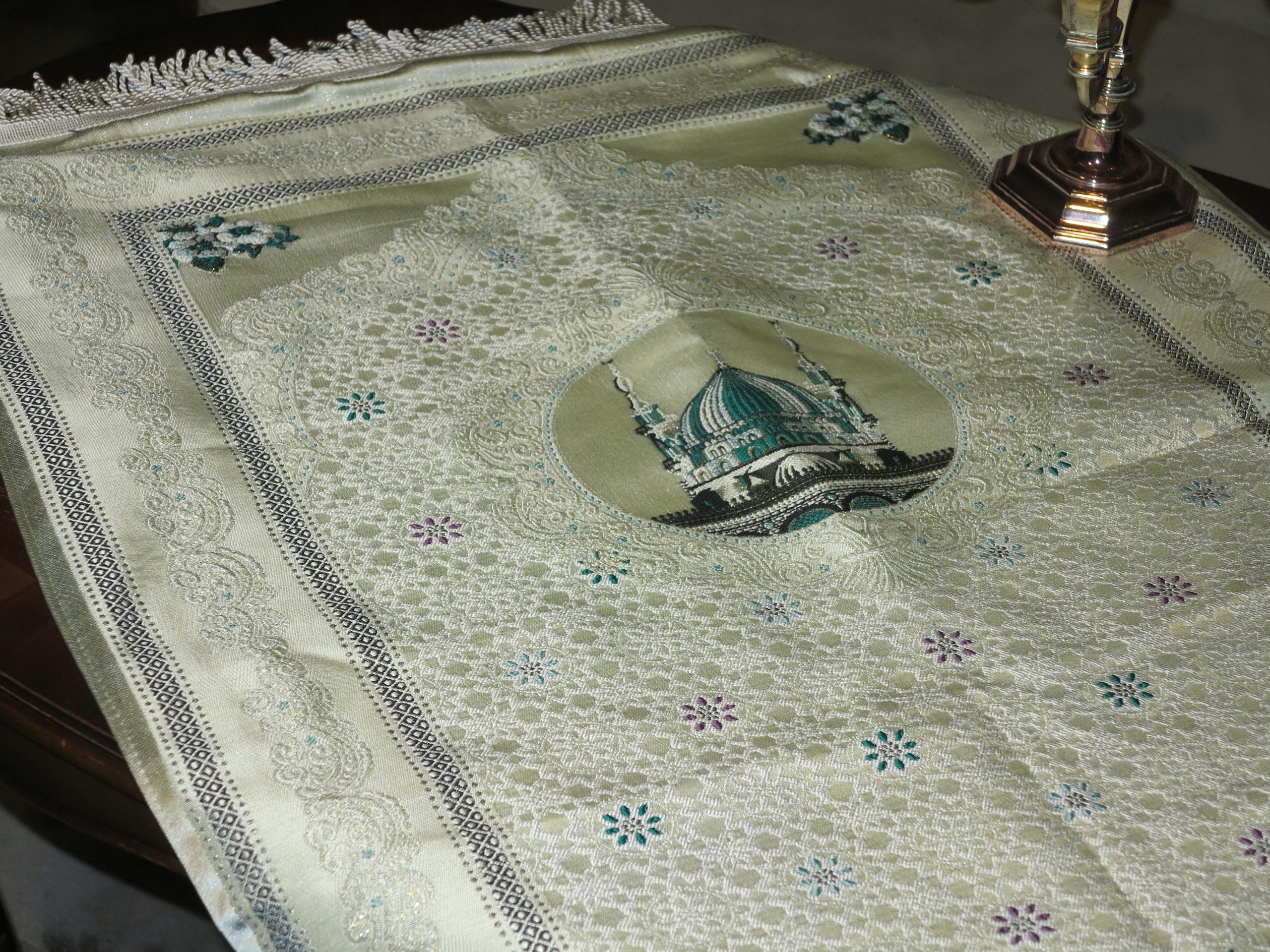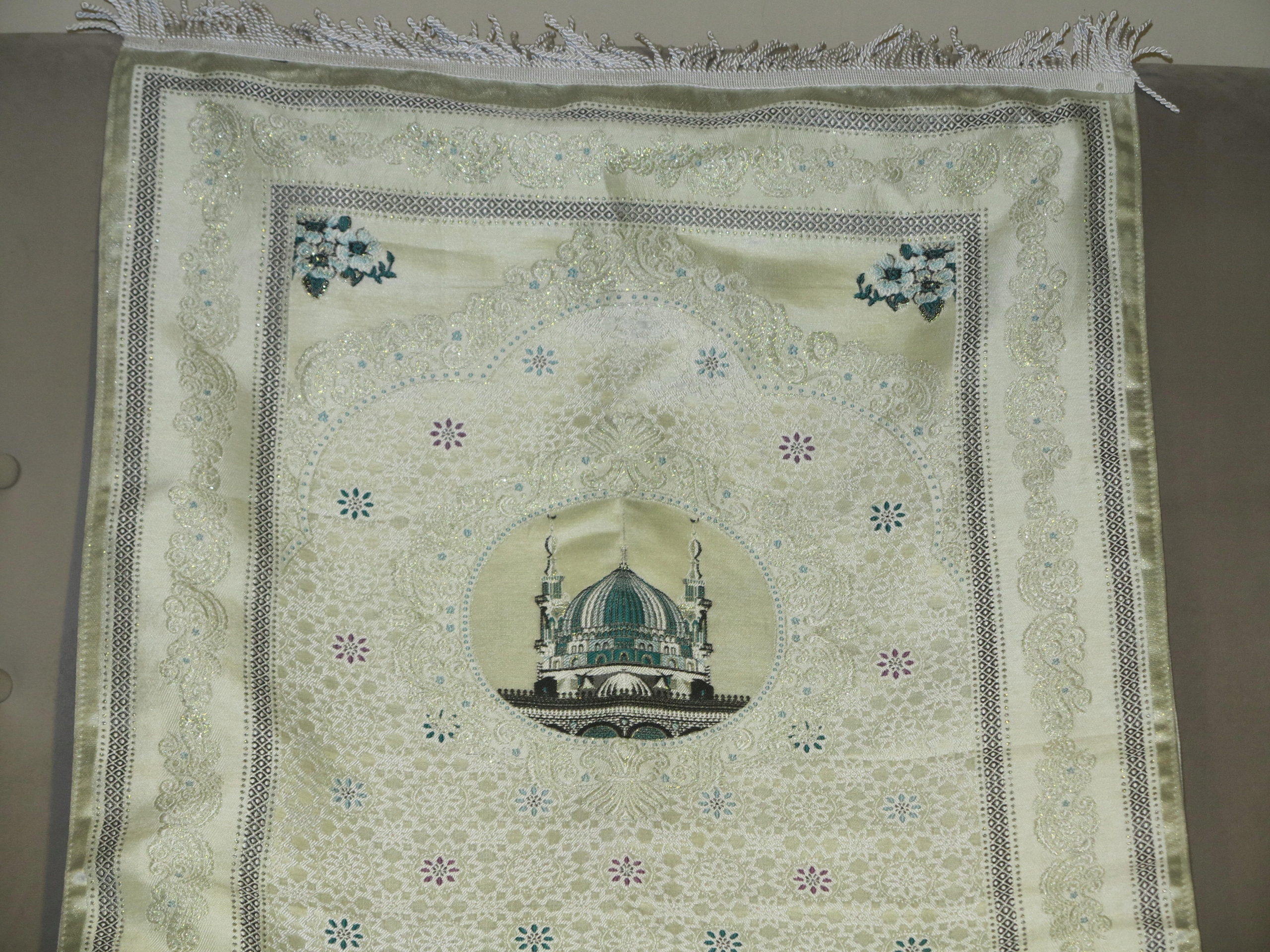 красивий, східне килим у перламутрові білого кольору. . Від густого атласу з опуклими візерунками та безліччю золотих нитки. Знизу на товстій полотні