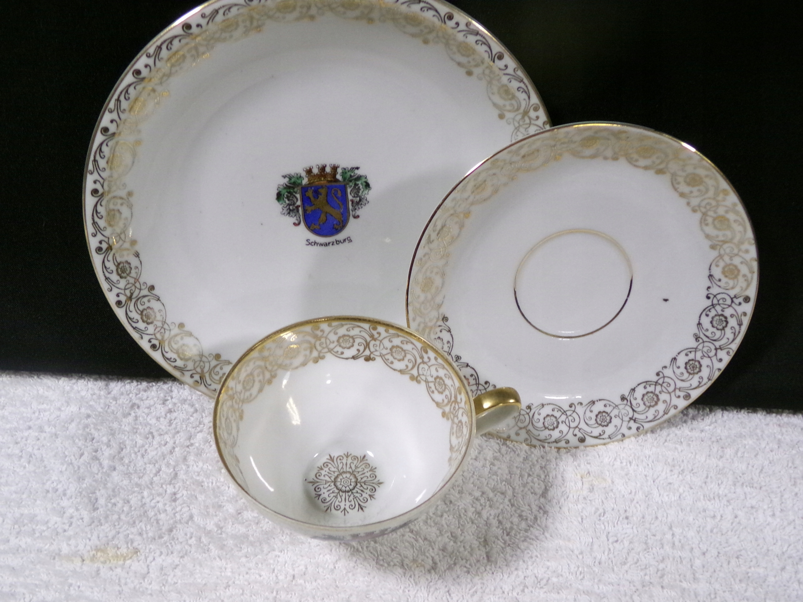 Прекрасний набір сніданку діаметром 10 см, висота 6 см, діаметр плит 19,5 та 15 см, вагою 0,53 кг. Дуже хороший стан збережений, без пошкоджень.