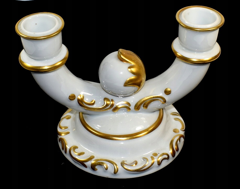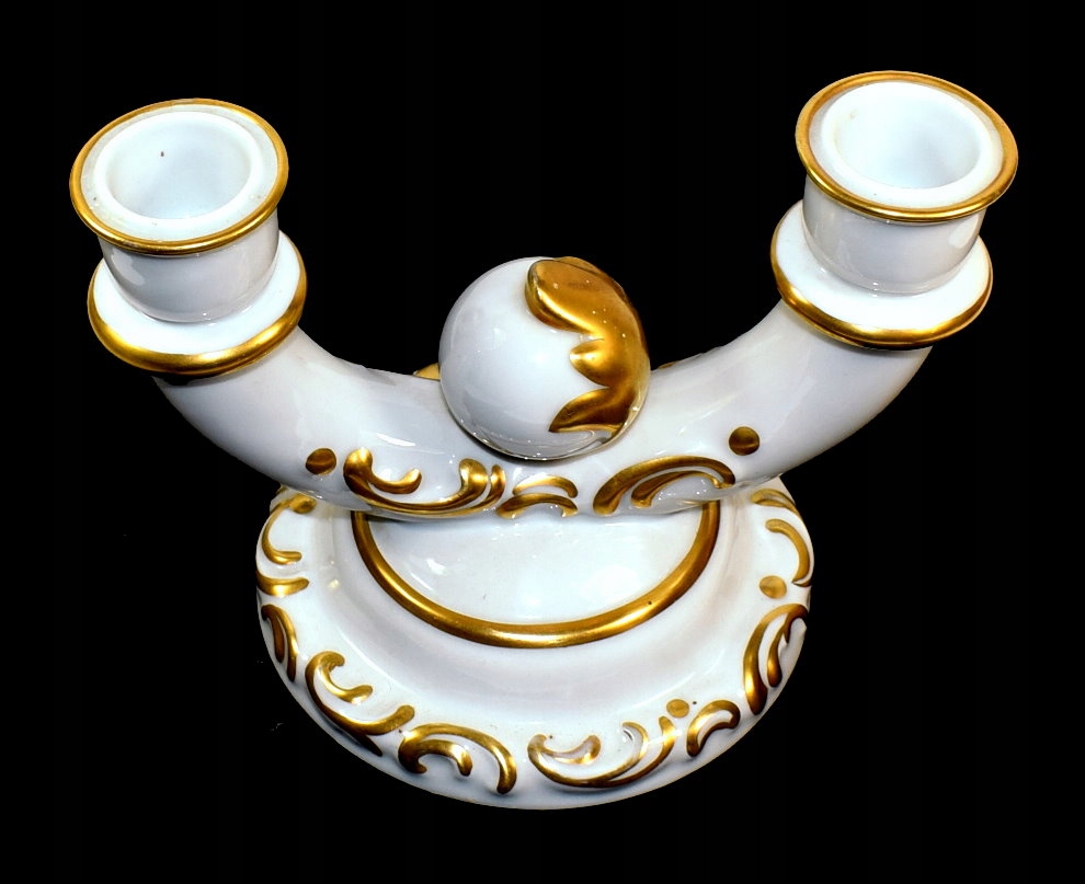Прекрасний старий порцеляновий свічник - золото - 1927 рік