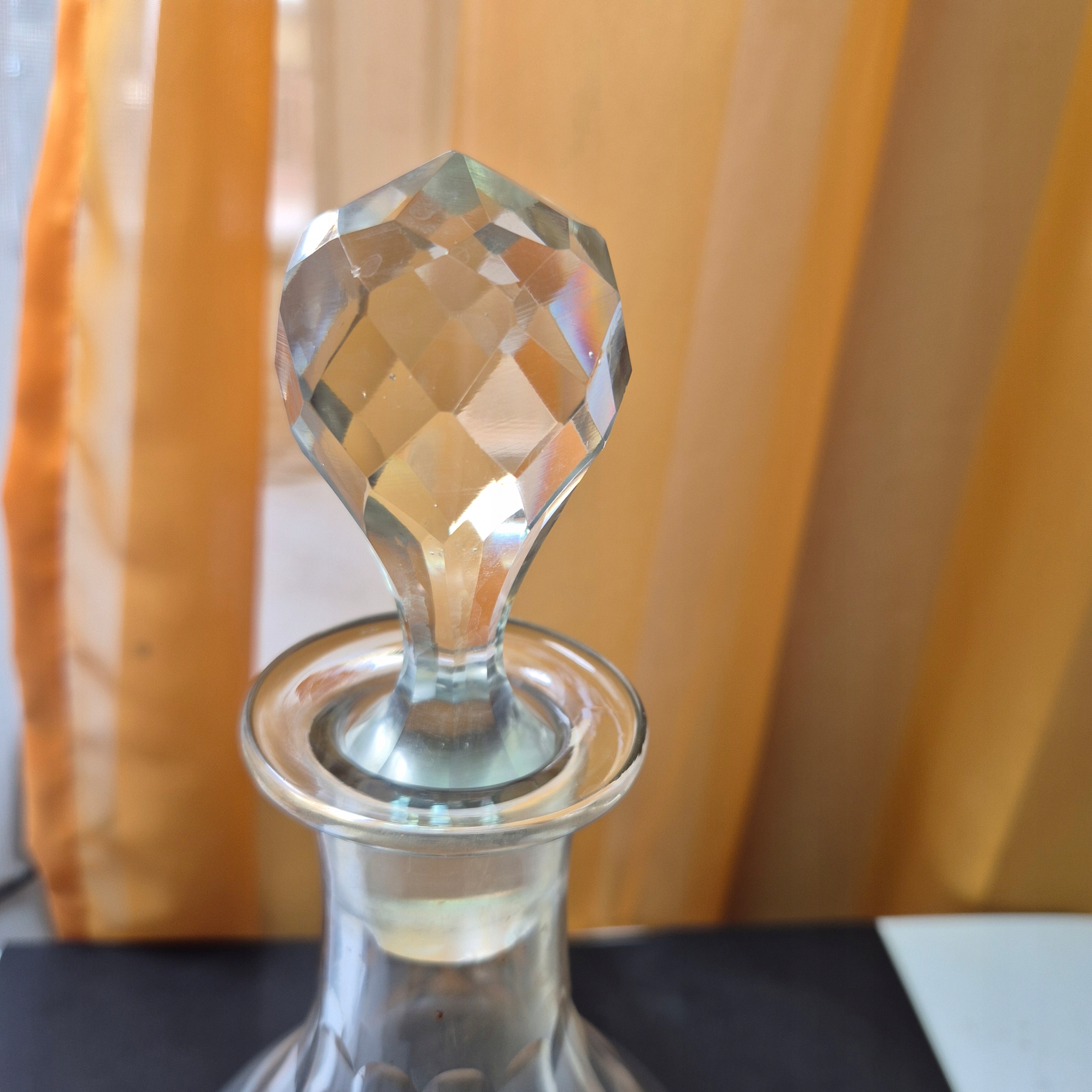 Прекрасний старий скляний караф з кришталевою старовинною пробкою з 70 -х.
