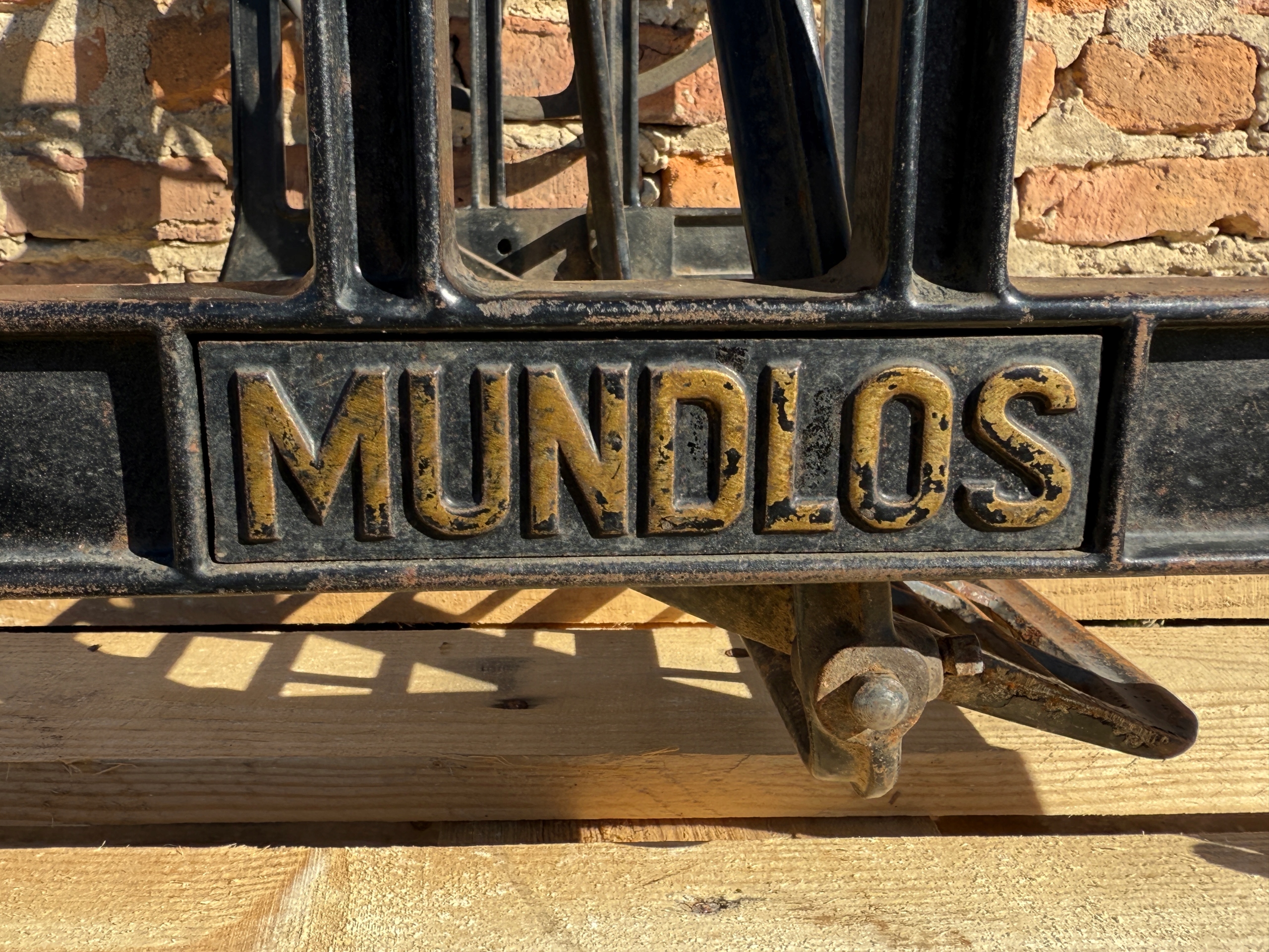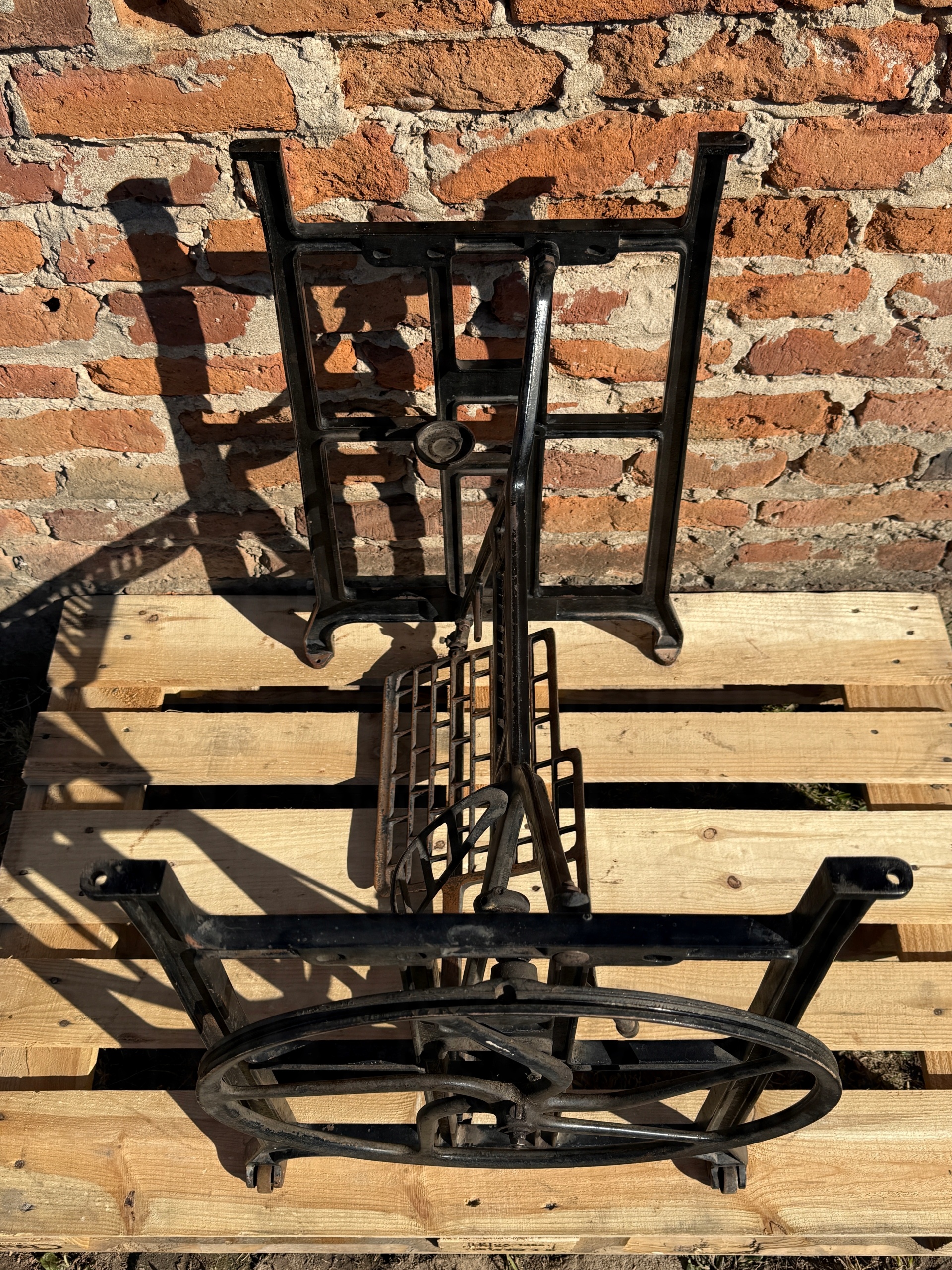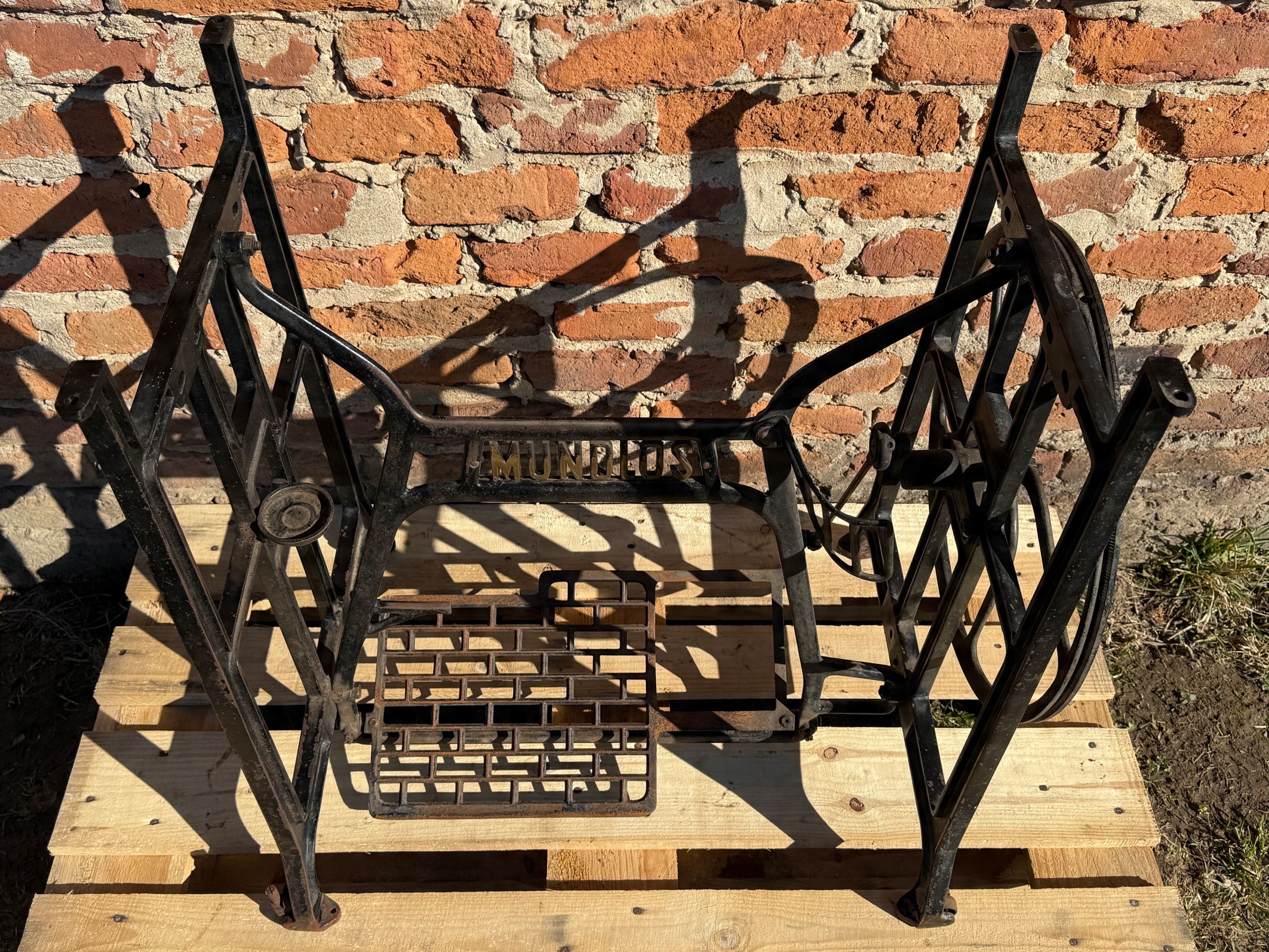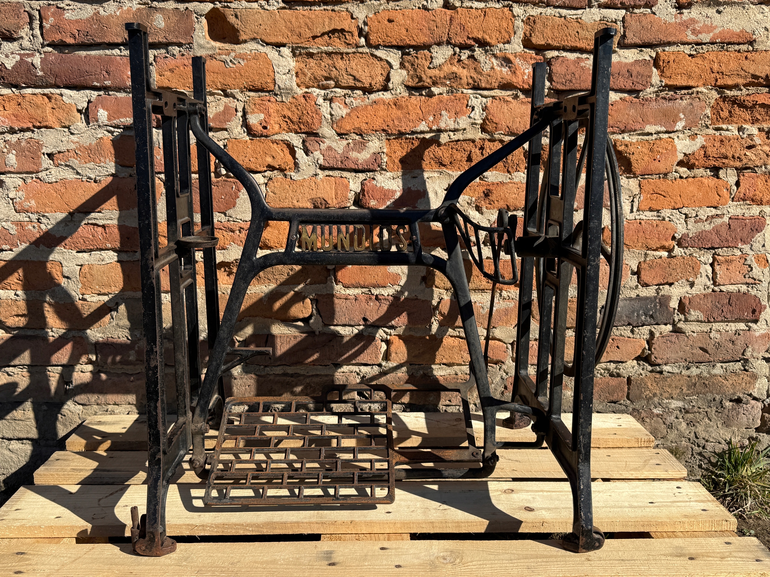 Тема продажу - це стара чавунна основа з швейної машини Mundlos. Дуже приємний малюнок - густий, масивний чавун. У ньому є всі колеса в нижній частині. Одна з ніг з можливістю вирівнювання. Додатковою перевагою є металевий елемент, що з'єднує колесо з педалі приводу, завдяки якому ми впевнені, що його не їдять дерев’яними, що можливо в основі з дерев’яним елементом. Після створення стільниці він може виконувати функцію як, наприклад, таблиці таблиці. ( Gł.)