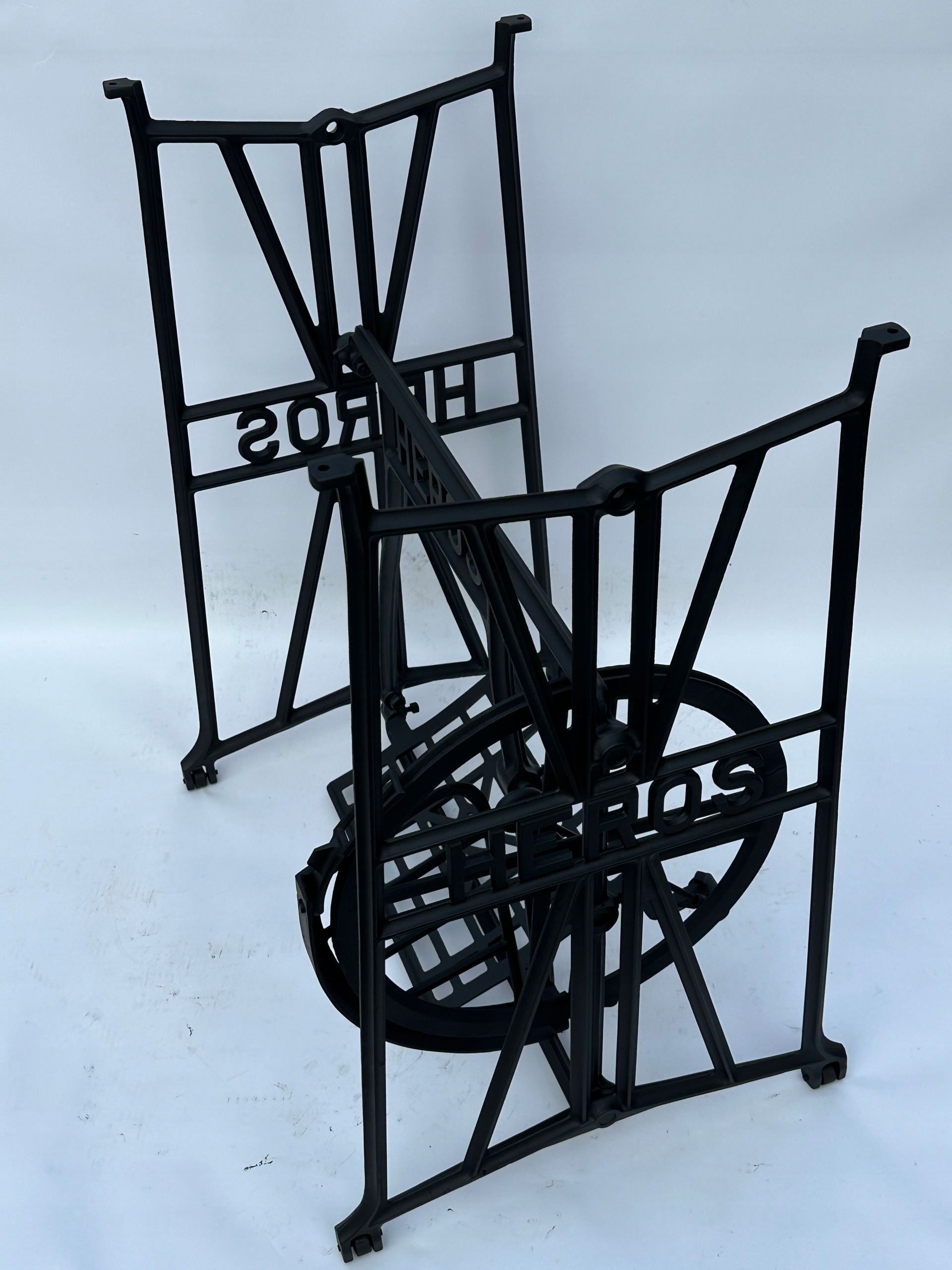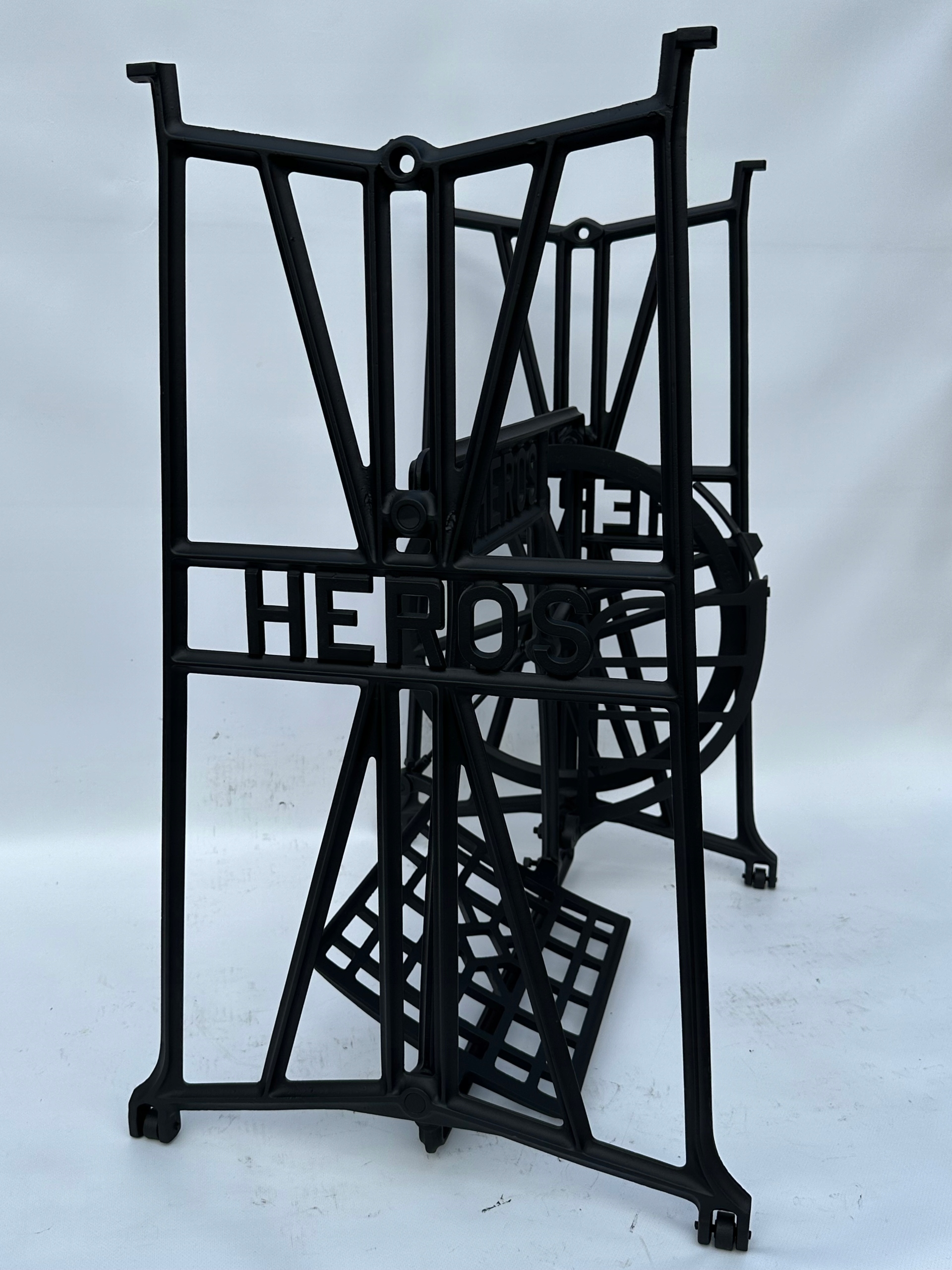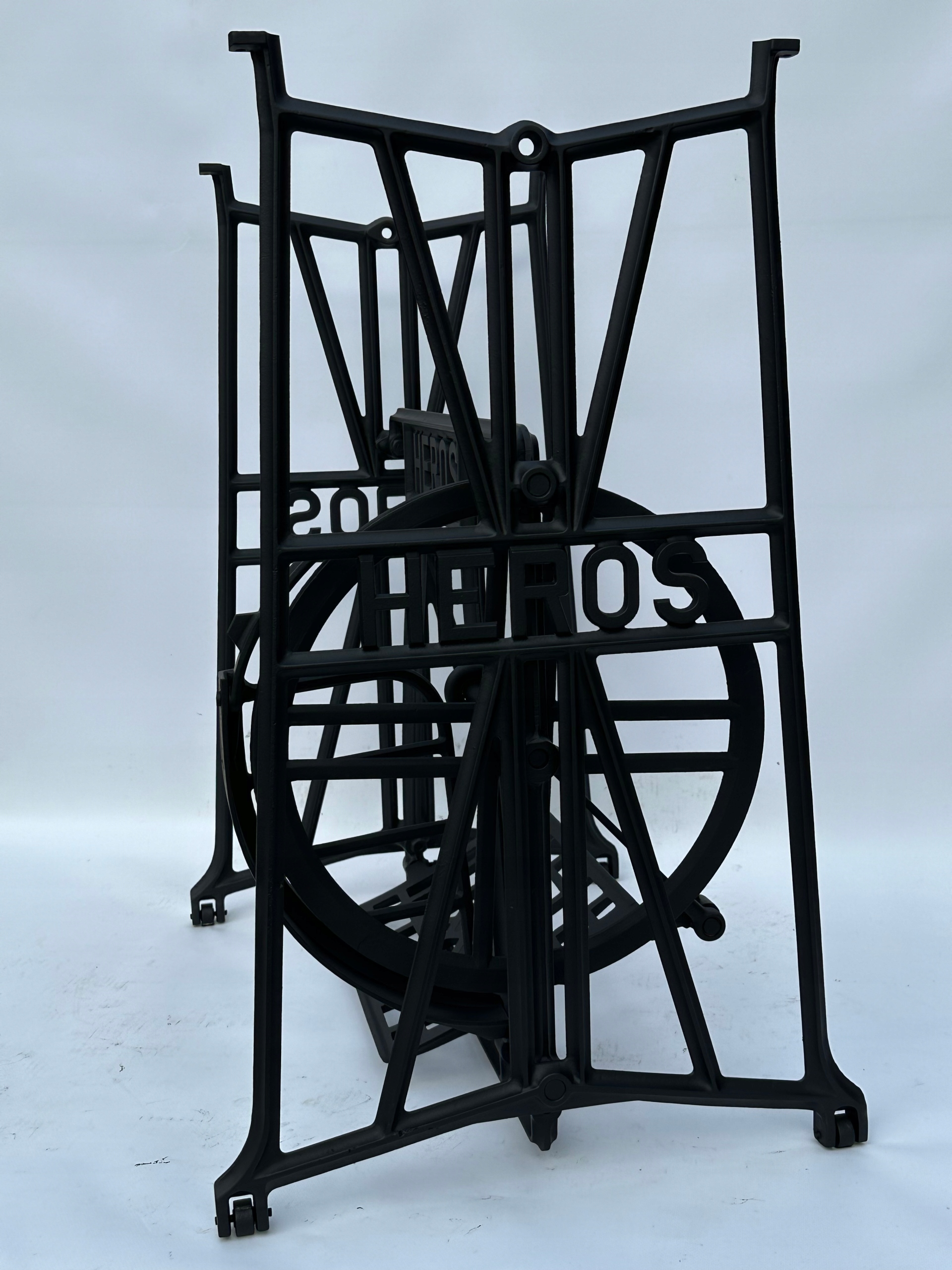 Тема продажу - це стара чавунна основа з швейної машини героя. Дуже приємний малюнок. З боків і в середній частині написи з логотипом компанії. У нього є всі 4 колеса внизу. Додатковою перевагою є металевий елемент, що з'єднує колесо з педалі приводу, завдяки якому ми впевнені, що його не їсть дерев’яними, що можливо в базах з дерев’яним елементом.
