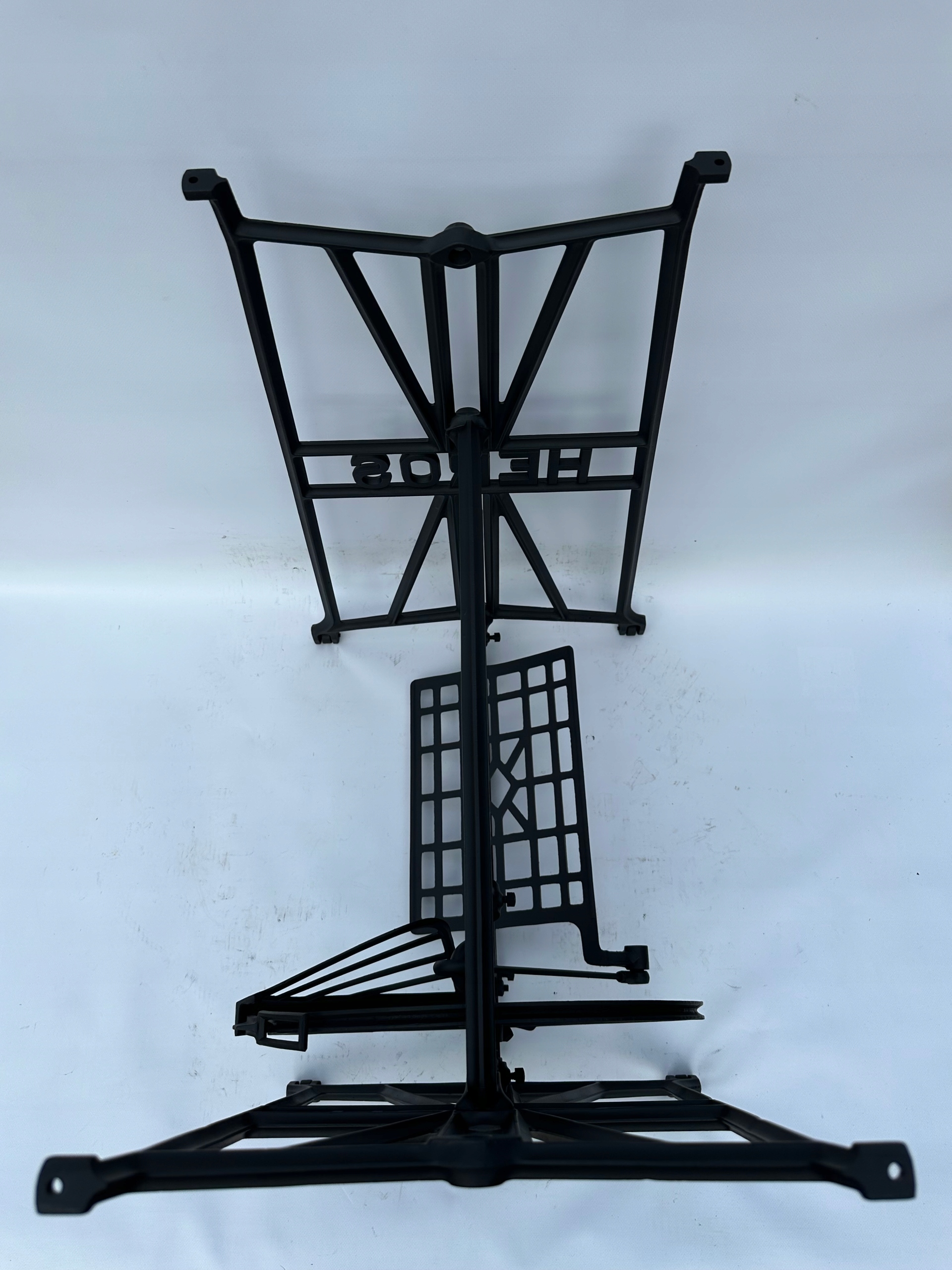 In the Верхня частина Існує 4 оригінальні отвори, до яких можна прикріпити стільницю. Це видно на останній фотографії. Стен - після професійного оновлення. Пліна і пофарбована чорним кольором, як на знімках - готова до вставки. Після створення стільниці вона може виконувати функцію як, наприклад, таблиця комп'ютера. Якщо ви шукаєте щось оригінальне, аукціон призначений для вас.