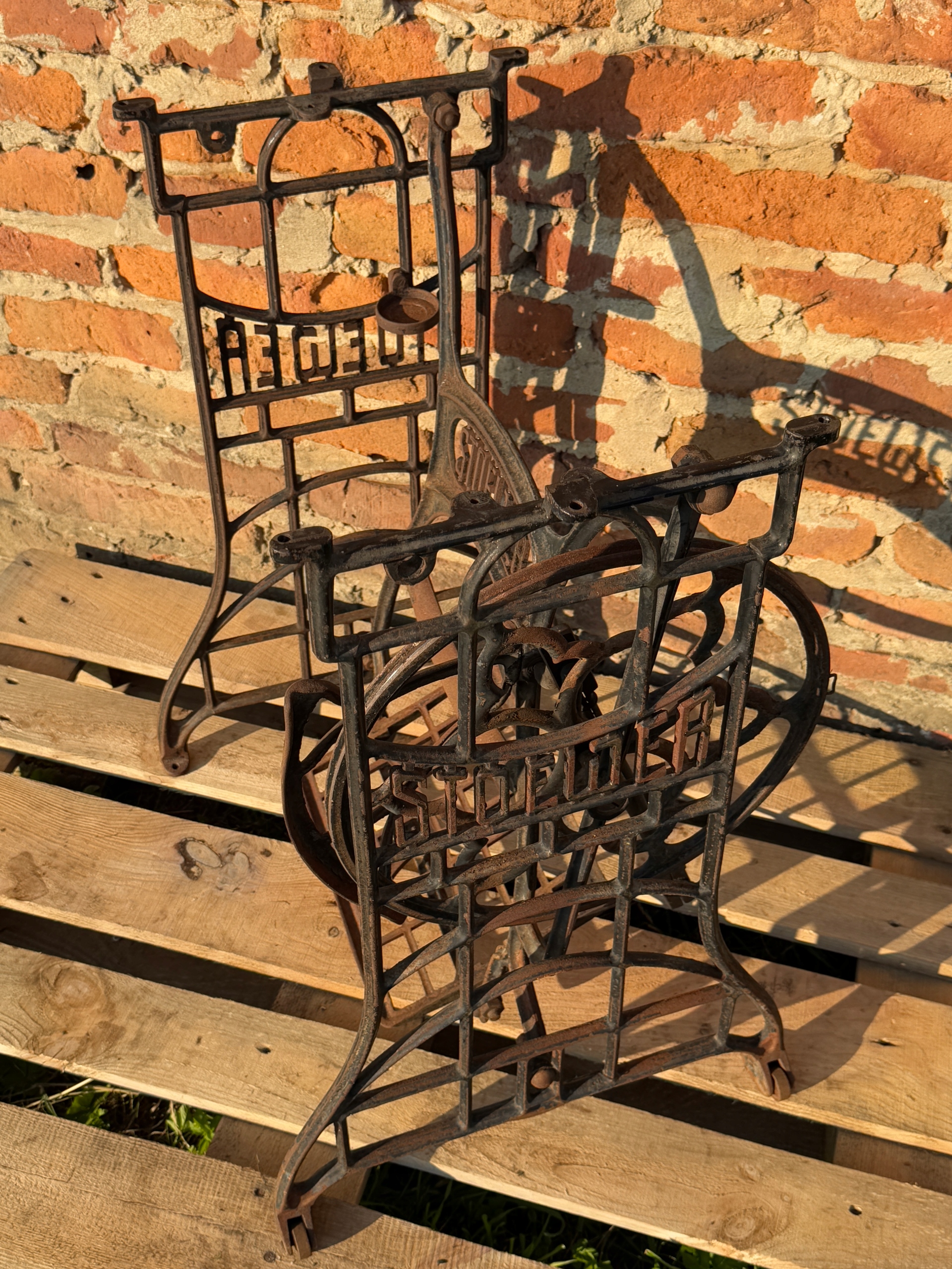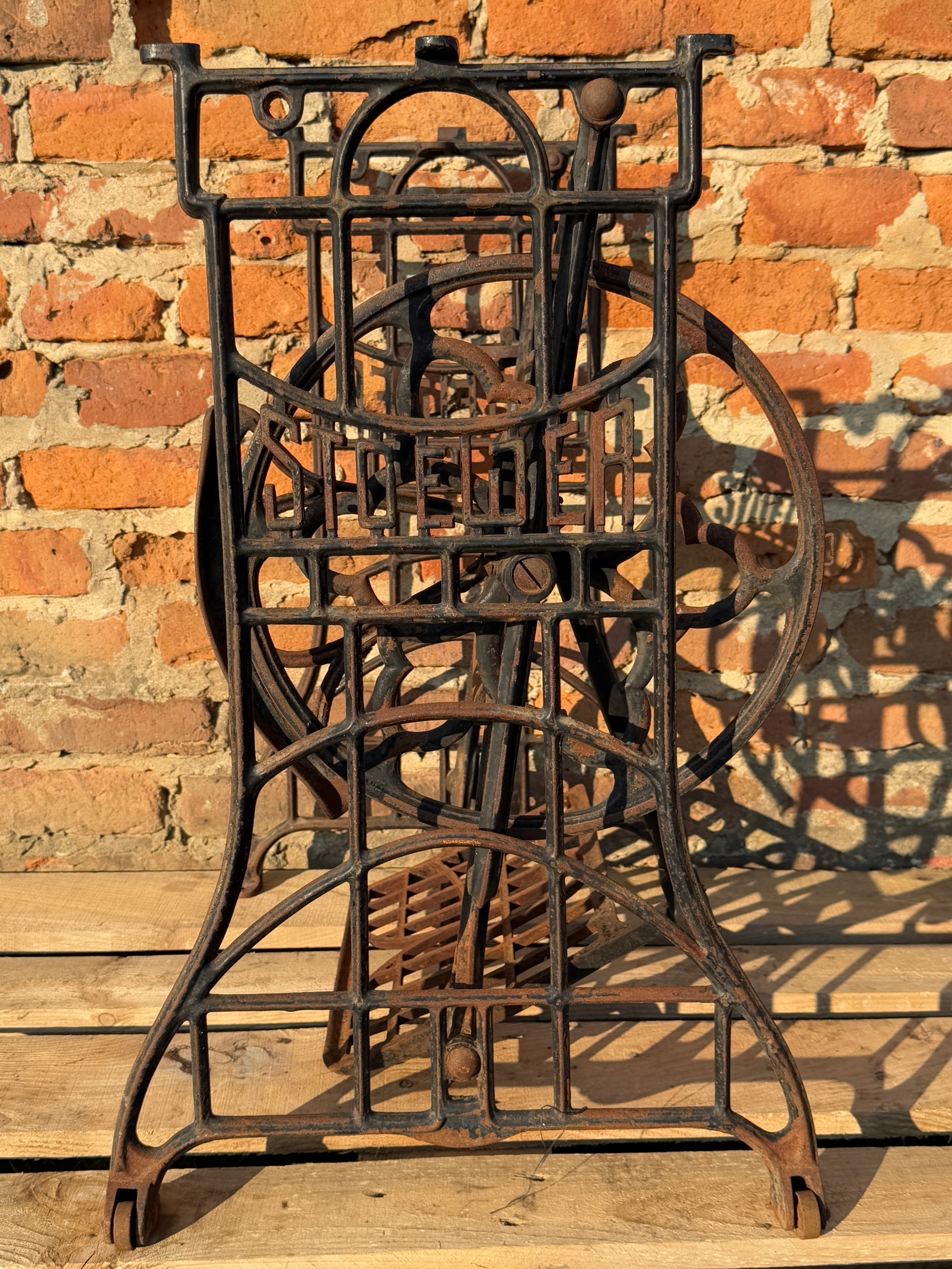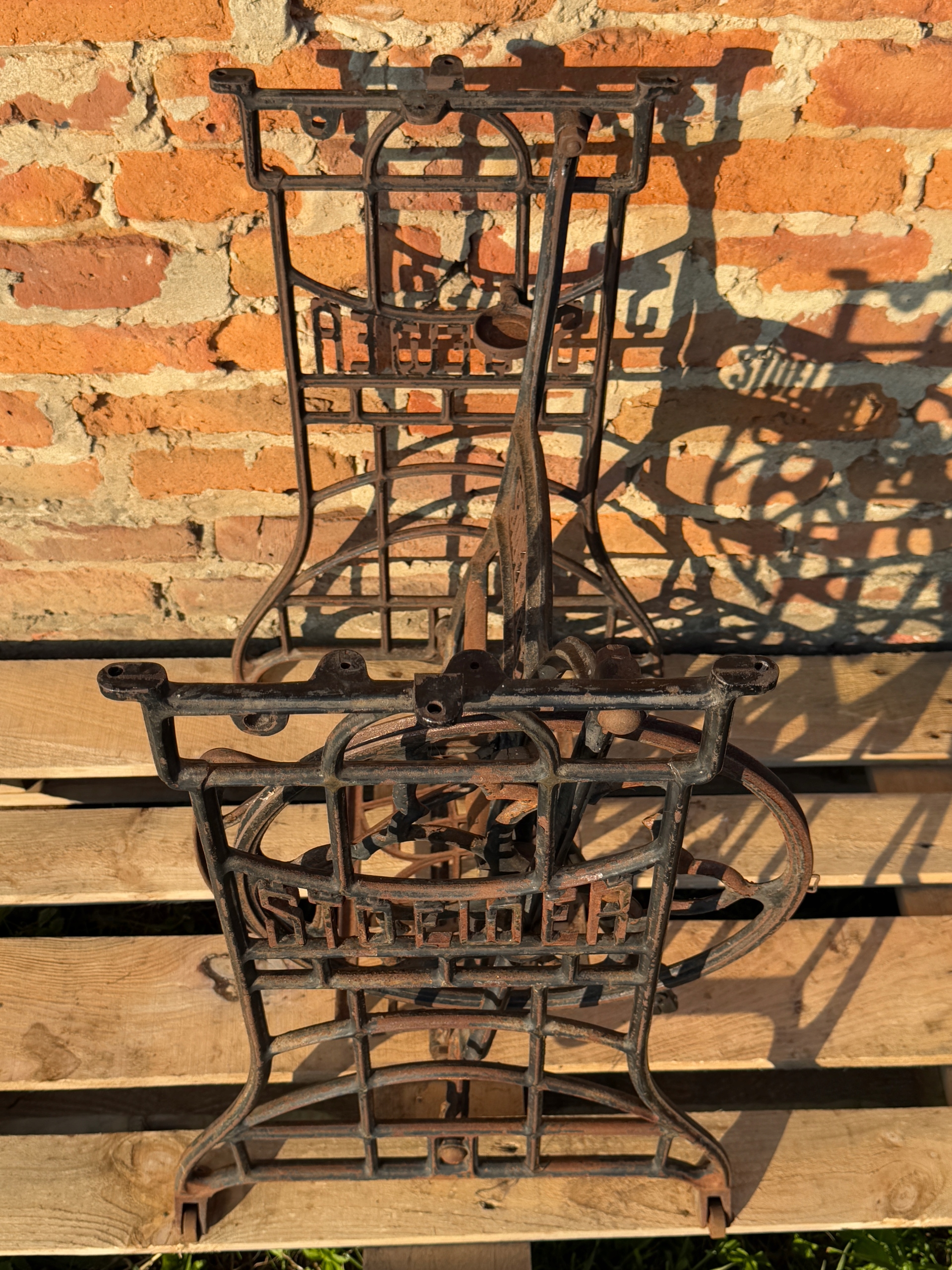 Тема продажу - це стара чавунна основа з швейної машини Stoewer. Дуже приємний малюнок, рідше. Основа була створена в довоєнному сцекіні (Stettin). Напис з логотипом компанії з боків. У ньому є обидва колеса в нижній частині.