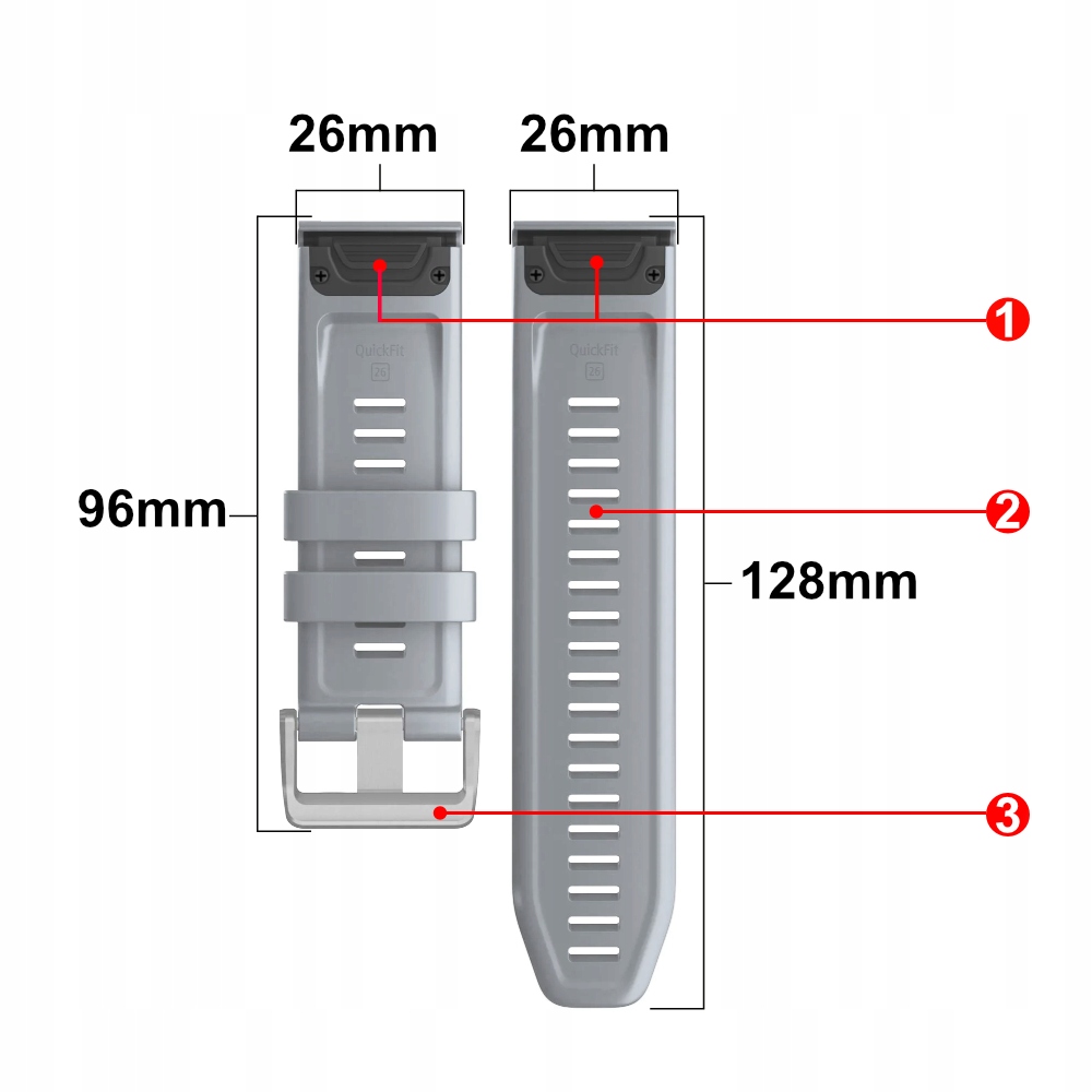 Силіконовий ремінець QucikFit 26 мм із срібною застібкою для годинників GARMIN