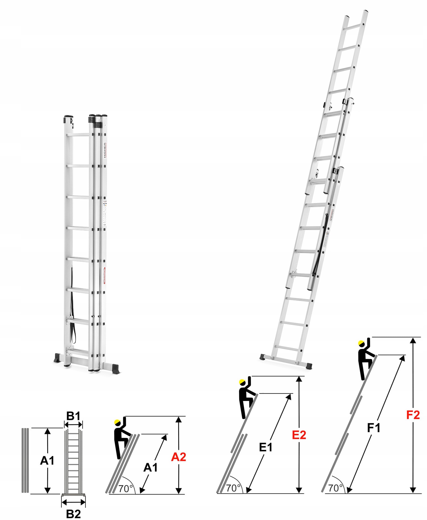 завдяки системі розповсюдження та складання з рівня до рівня до рівня, драбина може бути розгортається як приваблива драбина. Довжину сходи слайдів можна збільшити кожні 28 см або кожен рівень, таким чином ви можете адаптувати довжину сходів до необхідної довжини. Варто підкреслити, що драбини вищого® мають значно більшу максимальну довжину, ніж інші сходи на ринку (від сходи конкуренції). Зверніть увагу на довжину та діапазони сходів, а не на кількість рівнів - тоді ви правильно порівнюєте моделі.