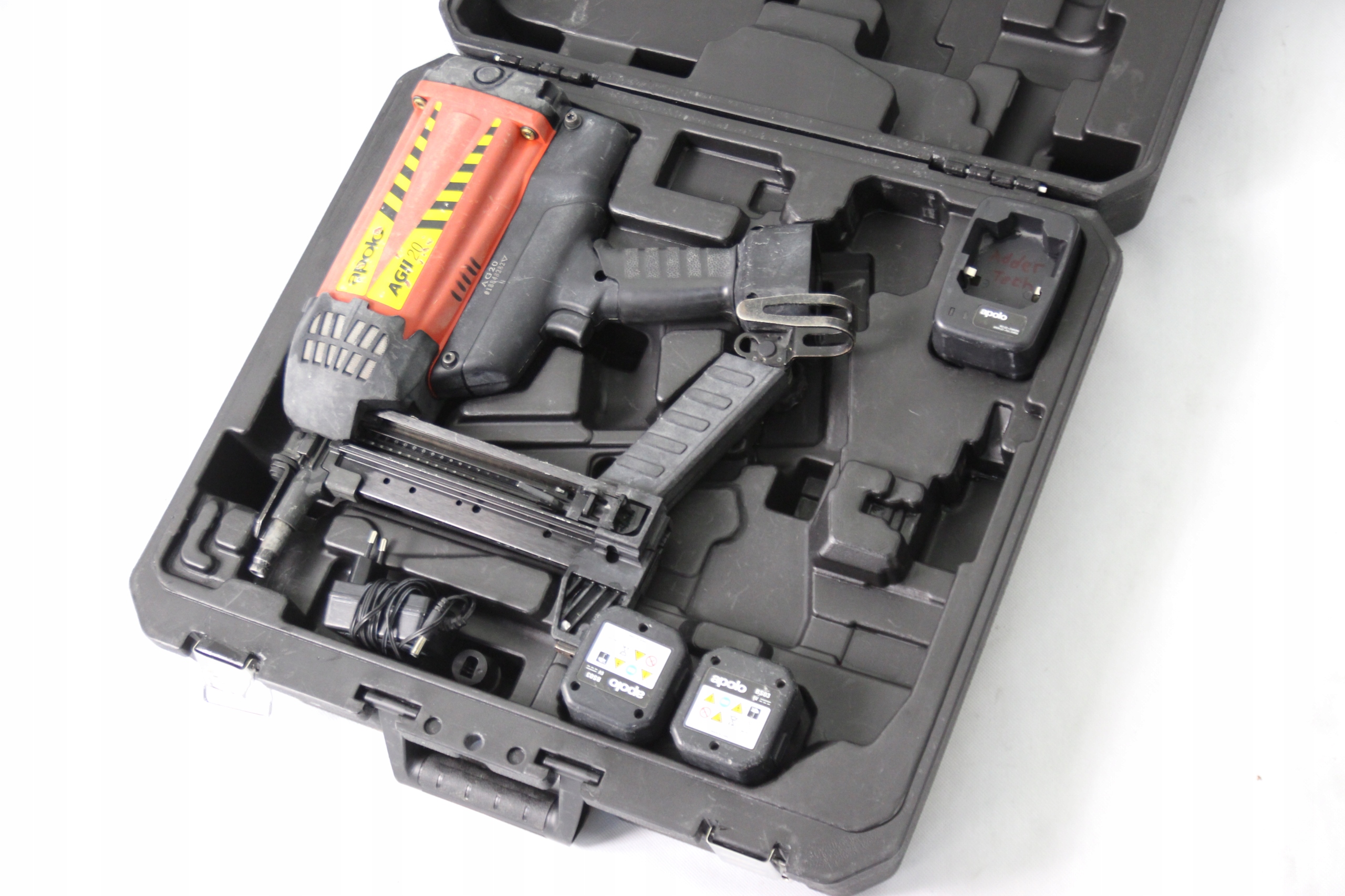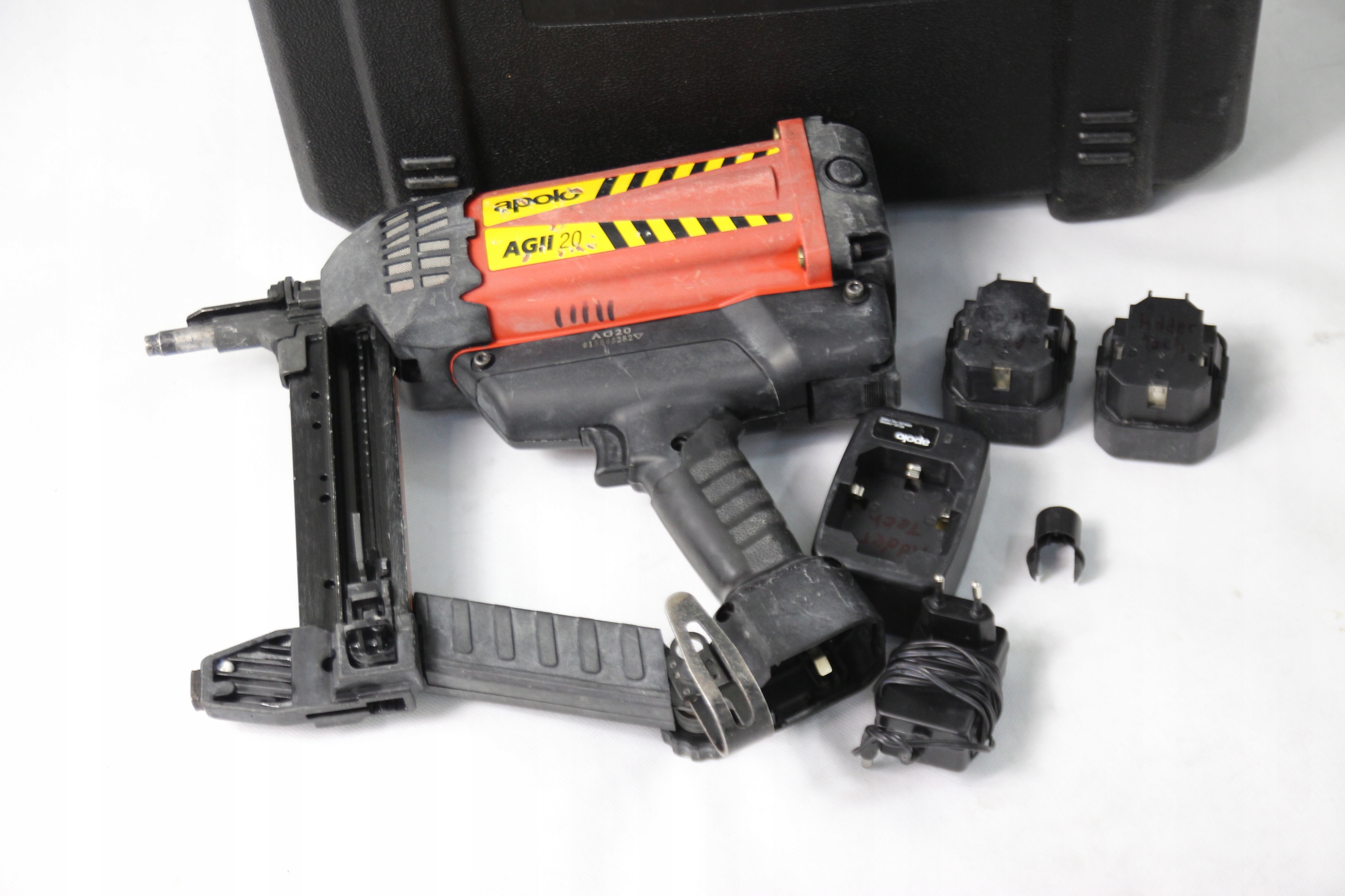Великою перевагою цвяхозабійника Apolo AGII є його комплектація, в комплект входять два акумулятори, тому ми можемо продовжувати роботу, не зупиняючись, щоб зарядити акумулятор. .