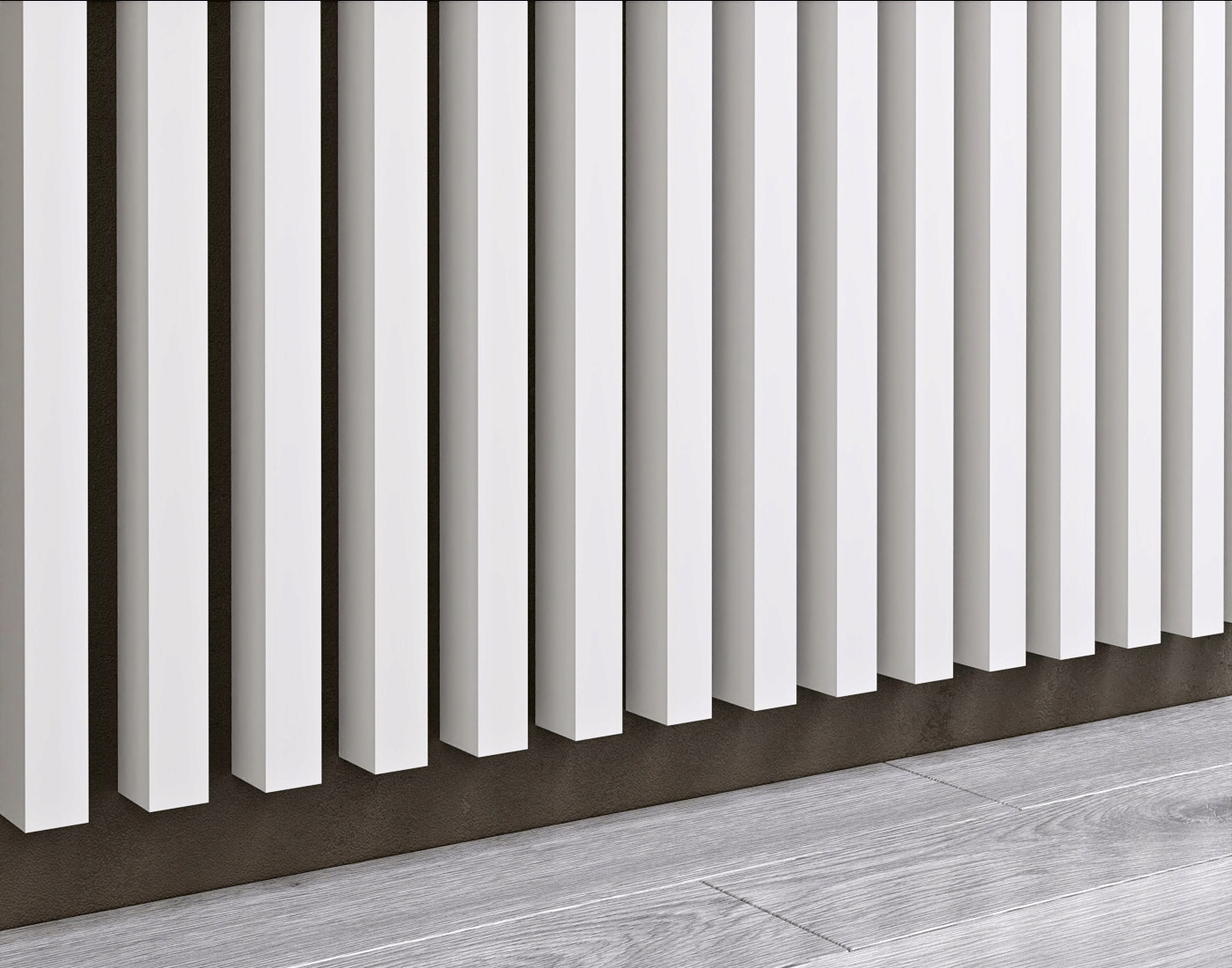 Верх і низ ламелей не приклеєні, проте наша пропозиція включає шпони різних кольорів, які відповідають вимогам функцію маскування для цих лише елементів. Зі зворотного боку ламелей шпону також немає - це непомітне для ока місце. Після кріплення ламелей на стіні залишається фрезерована виїмка для клею.