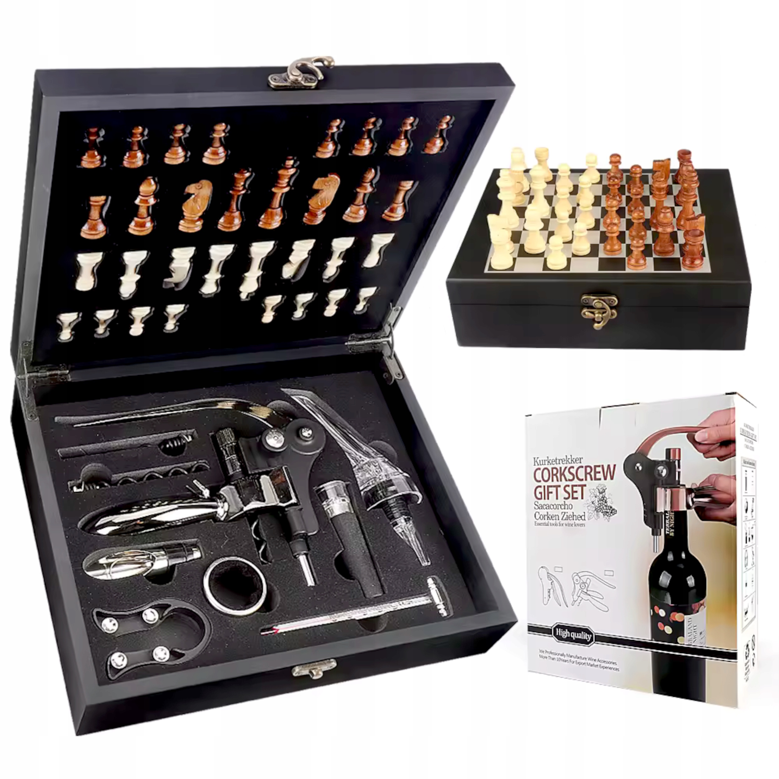 ВИННИЙ НАБІР ПРЕМІУМ + ШАХИ, подарунок, штопор, 10 предметів
