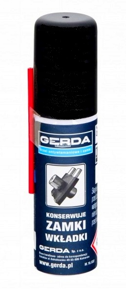 GERDA рекомендується для догляду за замками, циліндрами, навісними замками та ін. механізми. Препарат очищає, змащує, видаляє воду, зберігає та захищає від корозії.